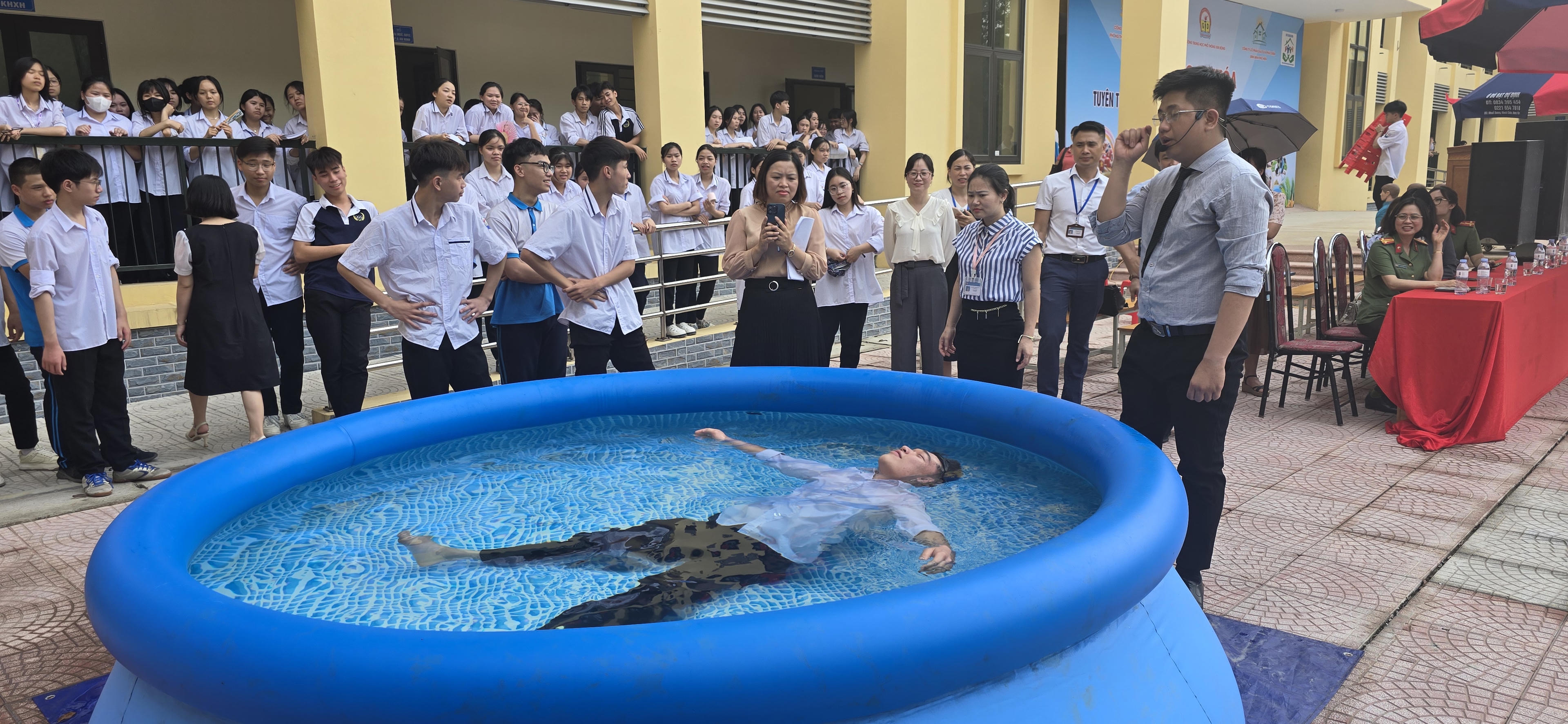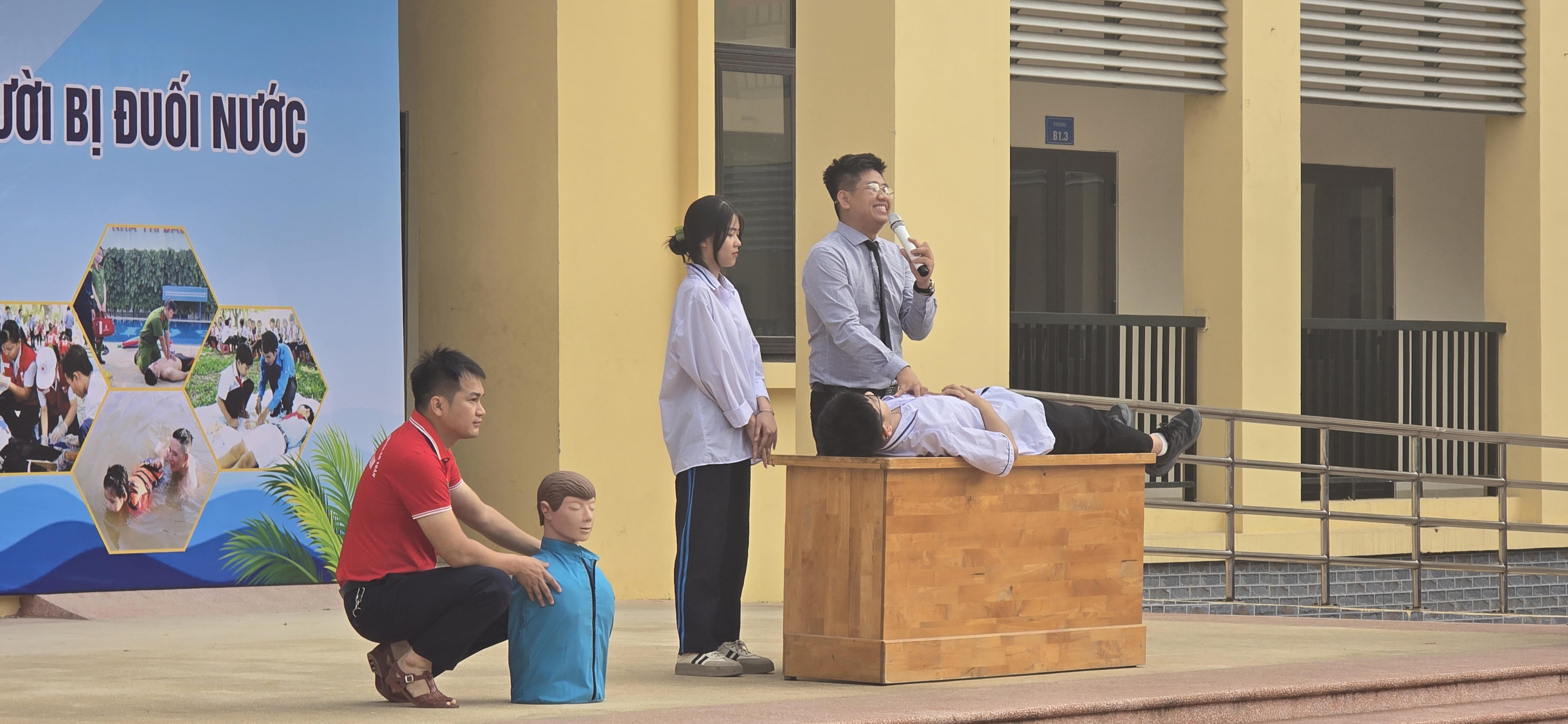 Trong khuôn khổ buổi hoạt động, giảng viên của Công ty cổ phần Giáo dục khoa học an toàn Việt Nam đã cung cấp kiến thức về các tình huống tai nạn đuối nước trong cuộc sống hàng ngày, đồng thời hướng dẫn thực hành kỹ năng cấp cứu kịp thời khi có người bị đuối nước.