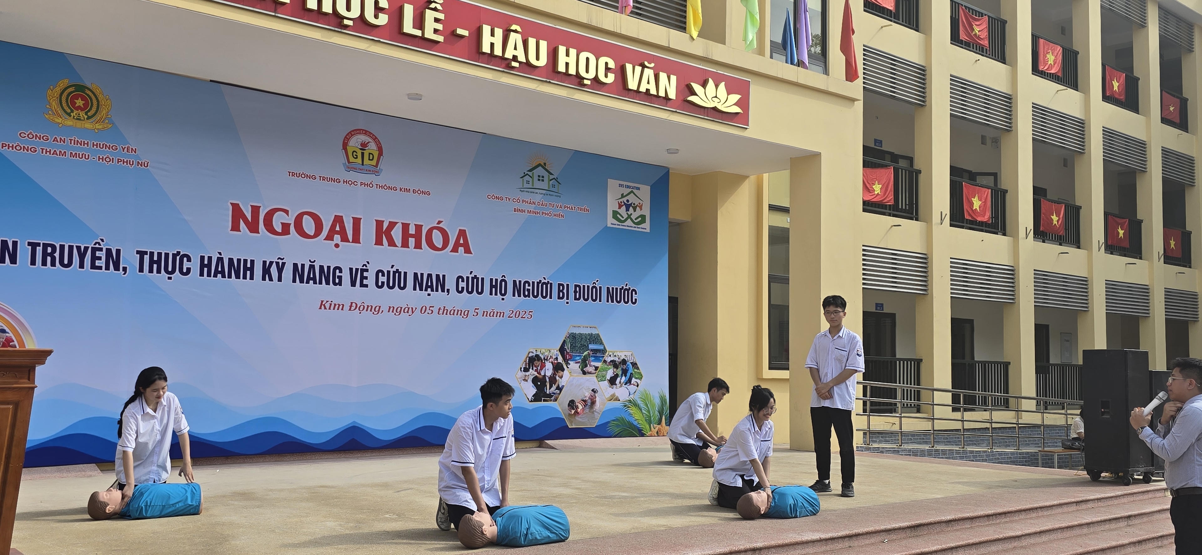 (PLVN) - Sáng ngày 05/05/2025, Trường THPT Kim Động đã phối hợp với Công an tỉnh Hưng Yên tổ chức buổi ngoại khóa tuyên truyền và thực hành nhằm phòng chống đuối nước.