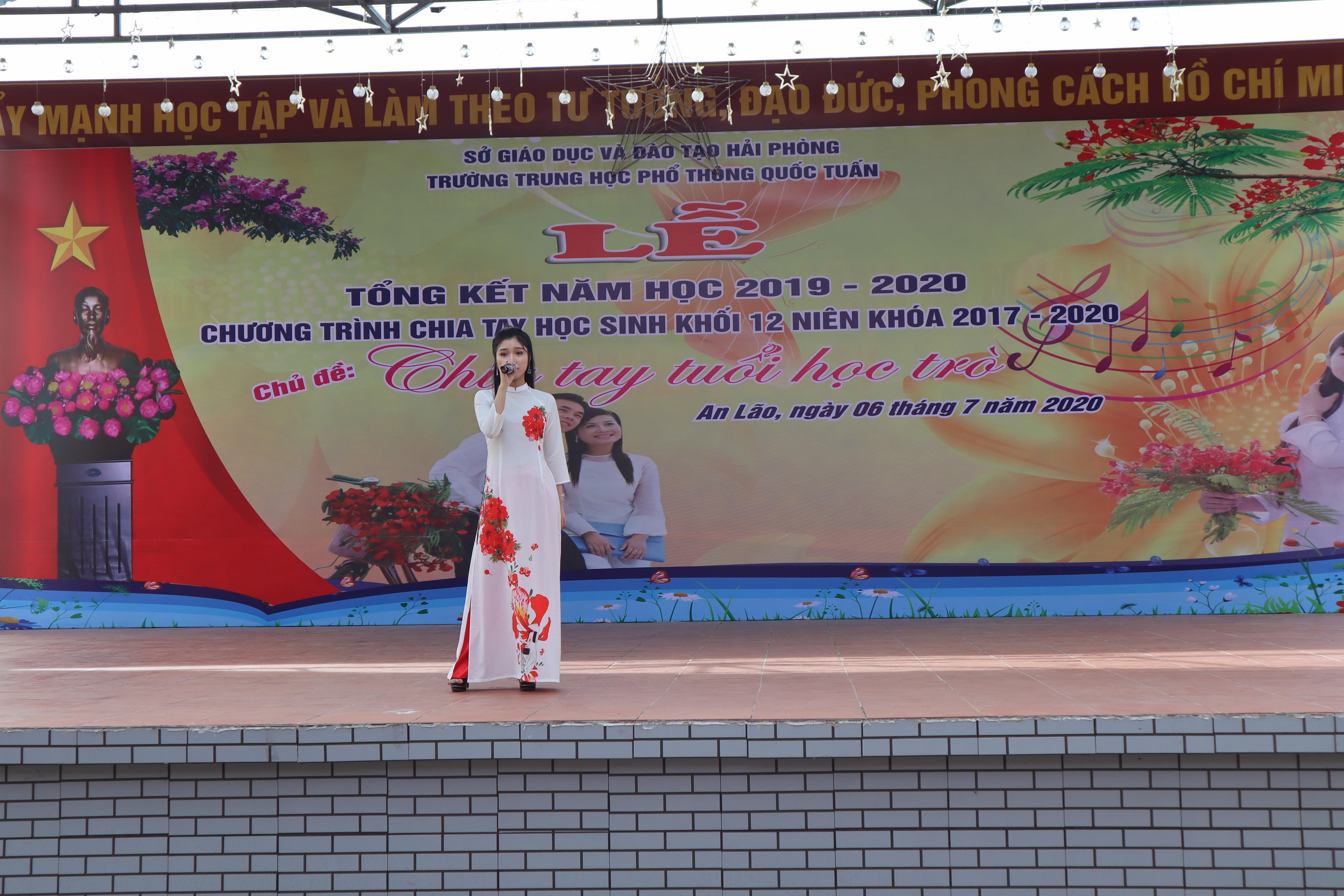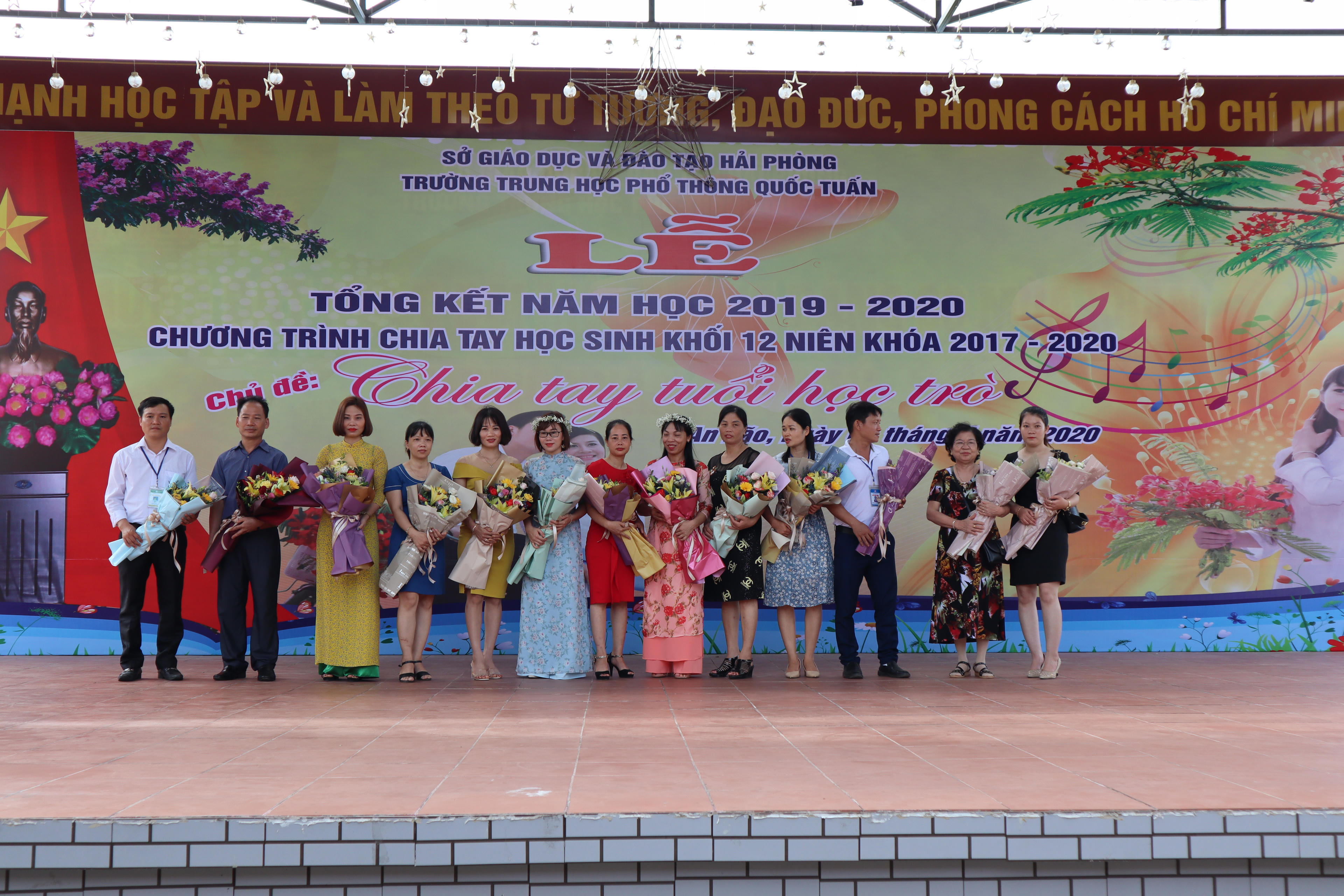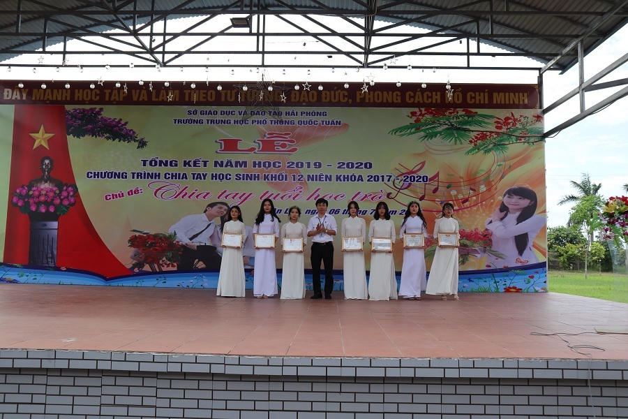 Thầy Phạm Huy Hùng - Hiệu trưởng trường THPT Quốc Tuấn - cho biết: Năm học 2019-2020 vừa khép lại, các em học sinh cũng như các thầy giáo, cô giáo phải đối mặt với biết bao khó khăn: thời gian nghỉ học nhiều do đại dịch Covid-19, quy chế thi thay đổi, thời tiết khắc nghiệt của mùa hè, vừa phải làm tốt công tác phòng chống dịch, vừa phải hoàn thành chương trình, kế hoạch, nhiệm vụ năm học...