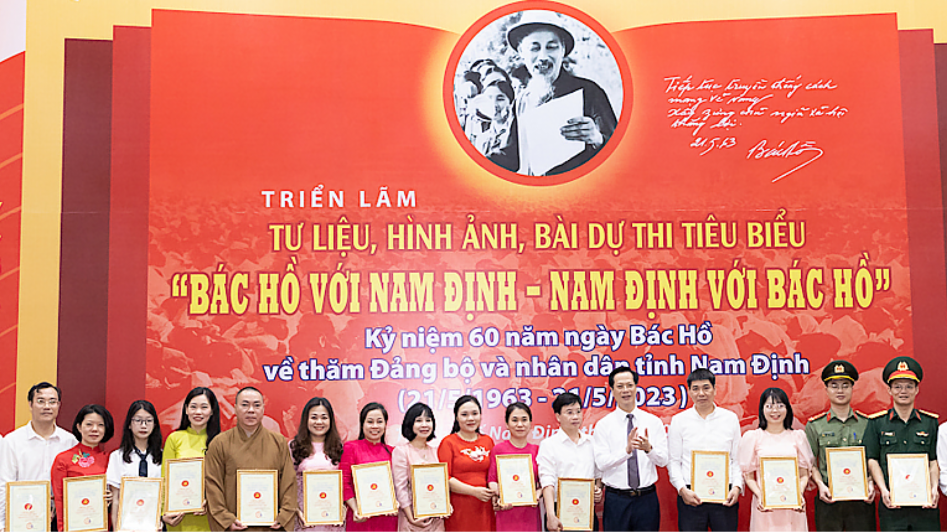 Trao Giấy chứng nhận cho các tác giả tiêu biểu trong cuộc thi viết "Bác Hồ với Nam Định, Nam Định với Bác Hồ" (Ảnh: Viết Dư) |