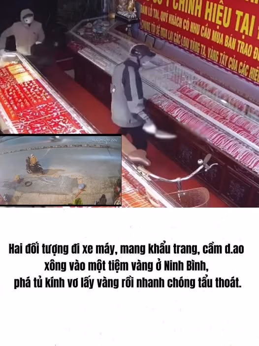 Theo thông tin ban đầu, vào khoảng 22h10 ngày 23/1, hai đối tượng nam giới mặc áo khoác, đội mũ, đeo khẩu trang kín mặt, mang theo dao và ba lô đã bất ngờ xông vào tiệm vàng có địa chỉ tại ở tổ 4, phường Duy Tiên, tỉnh Ninh Bình. Các đối tượng này nhanh chóng tẩu thoát sau khi chiếm đoạt một lượng tài sản lớn.
