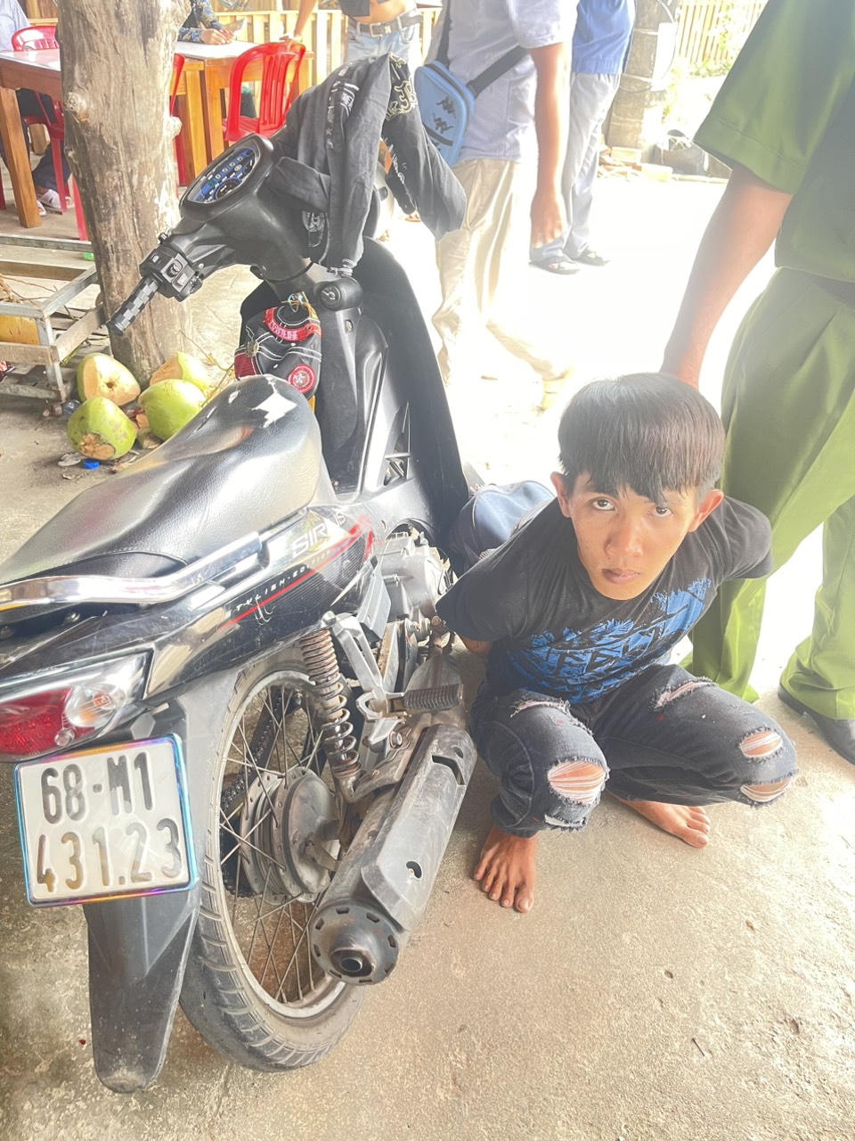 Đối tượng Lâm Hoàng Thưởng cùng chiếc xe tang vật. (Ảnh: Trần Lĩnh) |