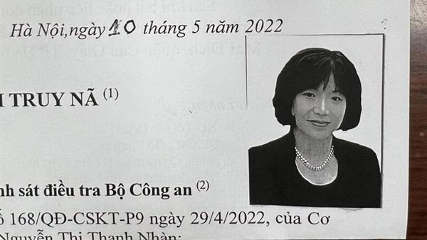 Cơ quan CSĐT Bộ Công an truy nã đặc biệt bị can Nguyễn Thị Thanh Nhàn.