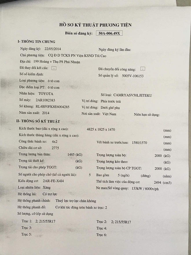 Tra cứu thông tin, biển số xanh này được đăng ký vào ngày 22/05/2014, chủ phương tiện là Cơ quan đại diện Tạp chí kiểm sát phía Nam VKSND Tối cao, có địa chỉ tại số 199 đường Hoàng Văn Thụ, phường 8, quận Phú Nhuận (TP HCM).