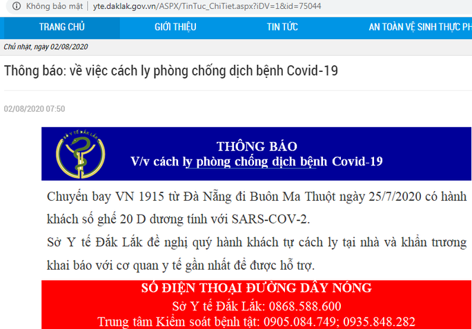 Sở Y tế Đắk Lắk đề nghị hành khách trên chuyến bay này tự cách ly tại nhà và khẩn trương khai báo với cơ quan y tế gần nhất để được hỗ trợ.