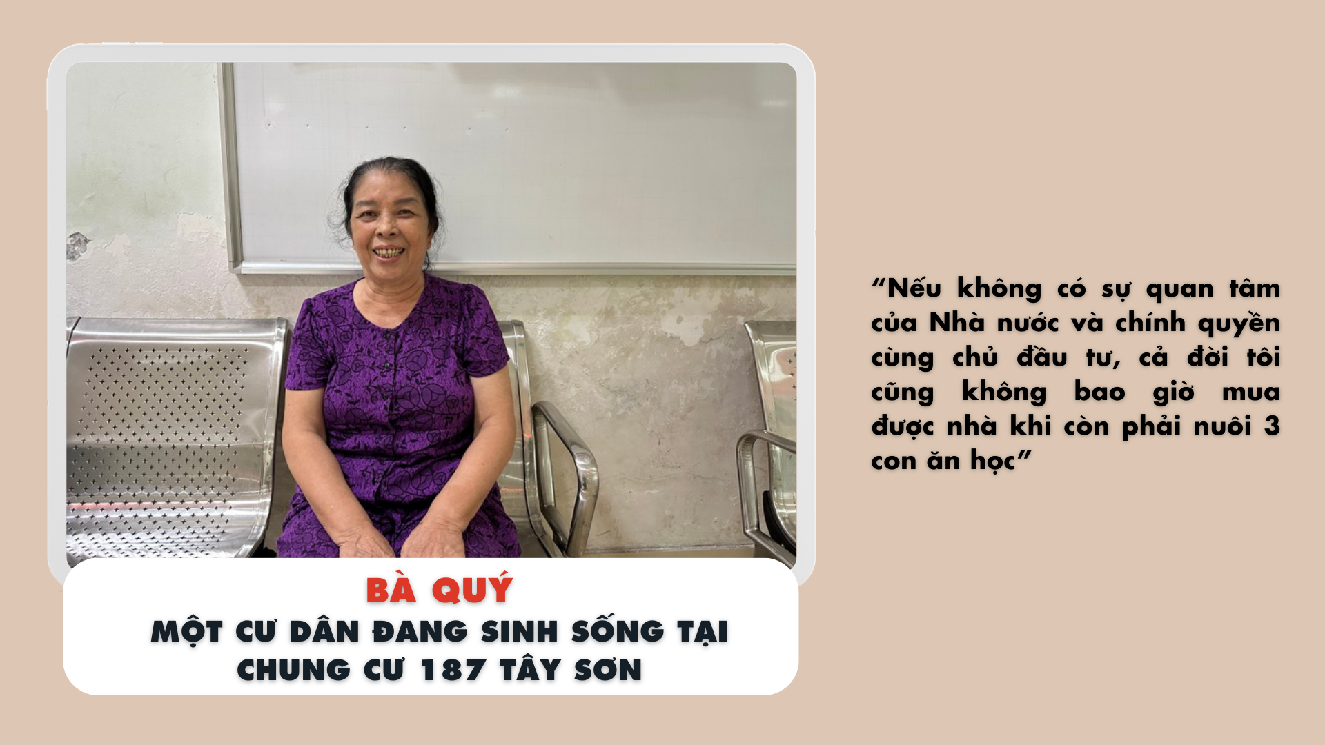 Bà Quý cho biết, căn hộ cũ của bà trước đây chỉ có 21m2, sau khi chung cư được cải tạo lại, bà chỉ phải đóng thêm "một khoản tiền chấp nhận được" để nhận 1 căn hộ 70m2.
