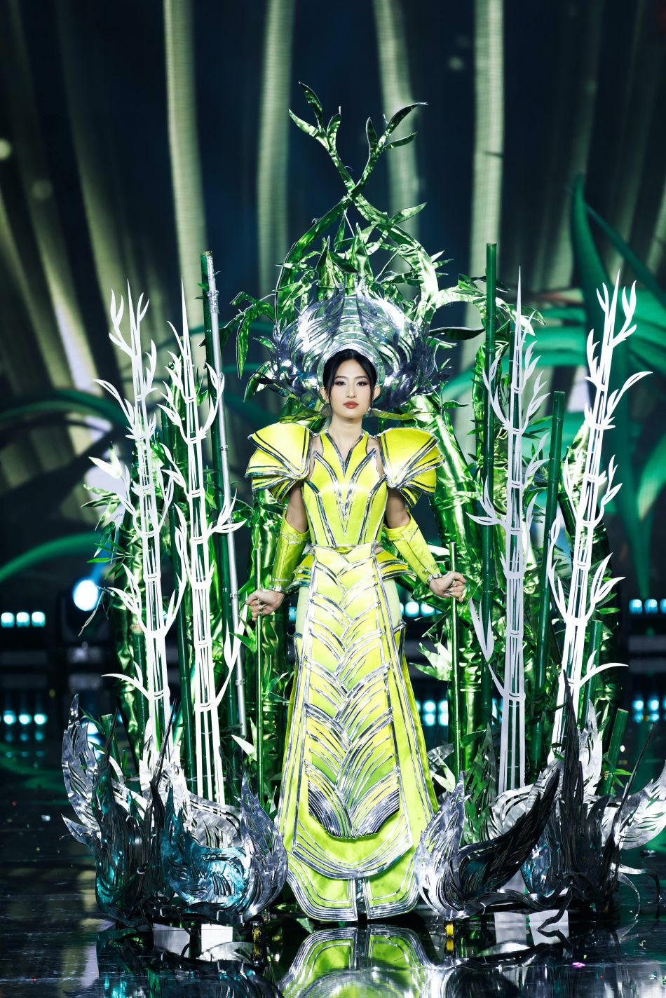 | Bộ trang phục Tre Việt Nam được cảm tác từ hình ảnh cây măng tre đại diện cho lớp trẻ Việt Nam - tài năng, bản lĩnh và luôn cố gắng phát triển, để sau này có thể trở thành những cây tre vững chãi, trở thành niềm tự hào và biểu tượng bất diệt của dân tộc Việt Nam. |