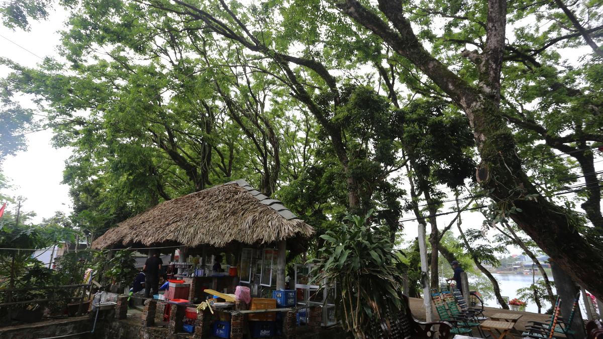 Thằng Tân chỉ ra tán sưa giữa vườn: