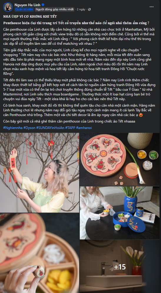 Tài khoản Facebook Nguyen Ha Linh chia sẻ những hình ảnh trang trí nhà đón Tết với bài viết “Nhà đẹp vì có không khí Tết” trên Mạng xã hội |