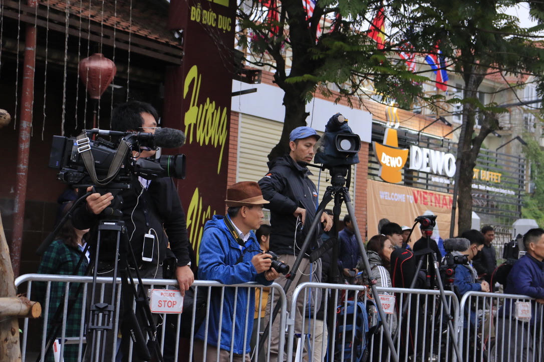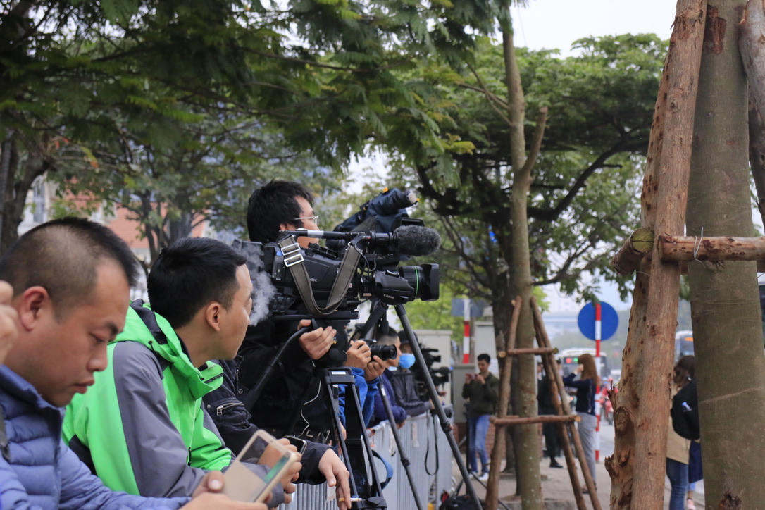 Vào lúc 7h tối, trên phố Đỗ Đức Dục đoạn trước khuôn viên khách sạn JW Marriott, hàng trăm phóng viên túc trực để đưa tin.