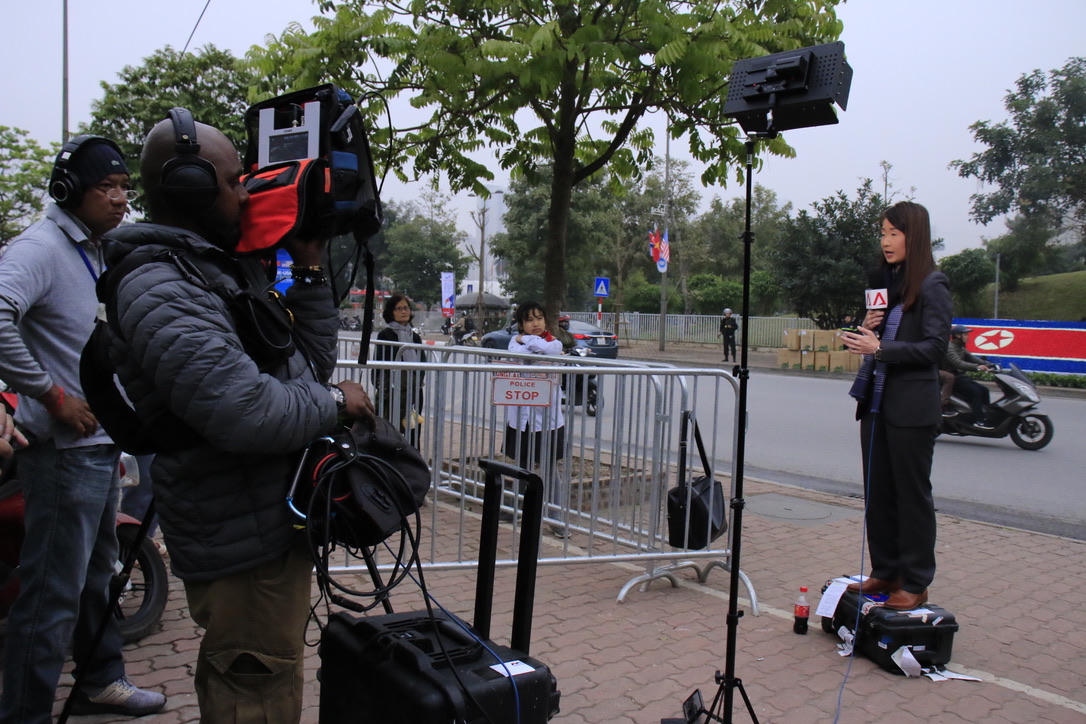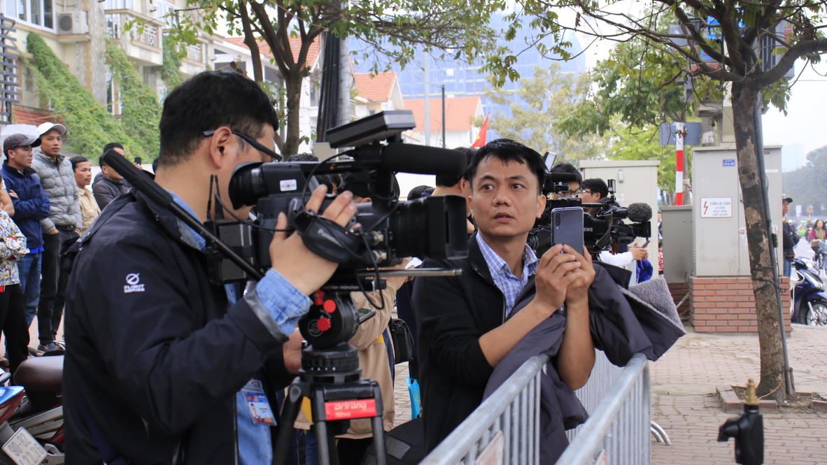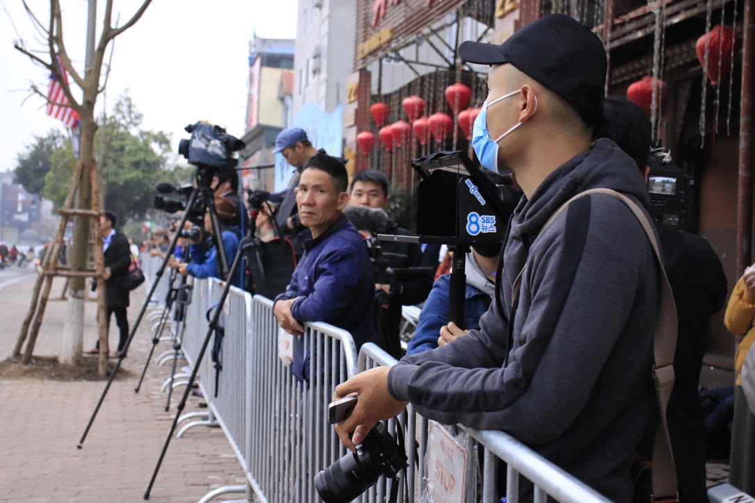(PLVN) - Suốt hai ngày qua cho đến tận gần đêm 26/2, hàng trăm phóng viên trong và ngoài nước túc trực trước khách sạn JW Marriott đợi người đứng đầu Nhà Trắng Donald Trump. Đây là nơi ở của ông Trump khi tới Hà Nội hội nghị thượng đỉnh Mỹ - Triều lần này.