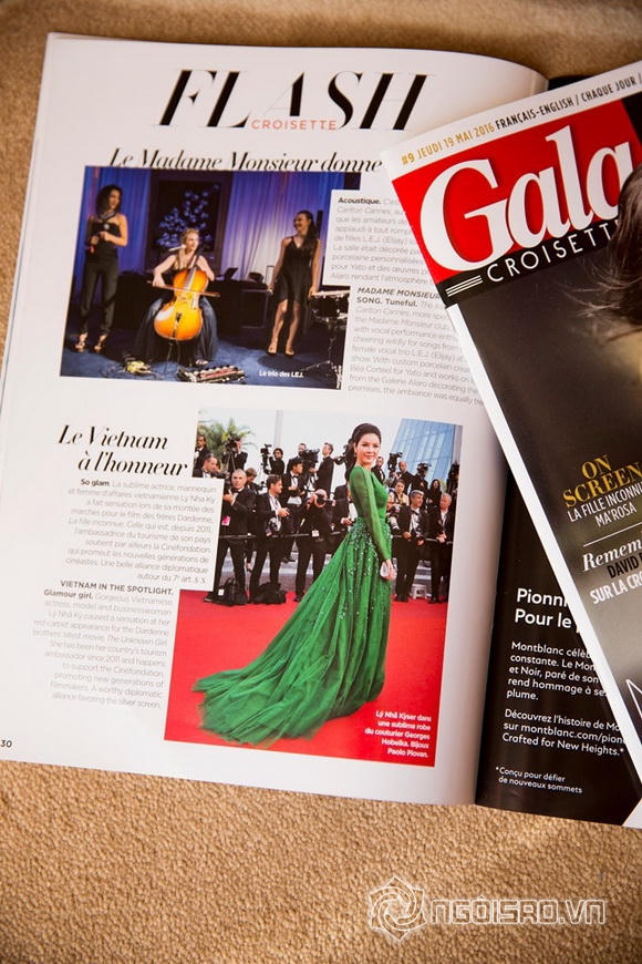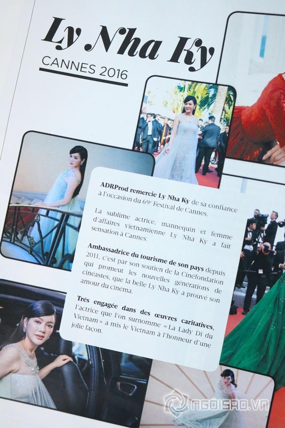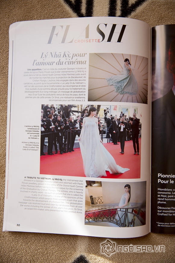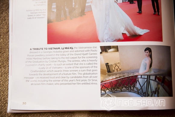 Tạp chí viết: “Một sự khâm phục đến từ Việt Nam - Lý Nhã Kỳ, ngôi sao Việt Nam, diện váy của Georges Hobeika và trang sức của Paolo Piovan, tạo dáng ở sảnh khách sạn Grand Hyatt Cannes Hotel Martinez trước khi xuất hiện trên thảm đỏ buổi chiếu phim Graduation của đạo diễn Cristian Mungiu. Nữ diễn viên, người tích cực tham gia làm từ thiện và được ví như 'Công nương Diana của Việt Nam' là một trong những nhà bảo trợ của Cinefondation.