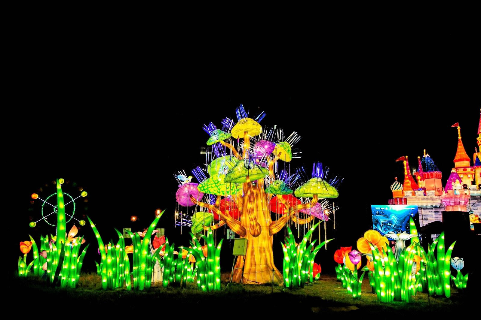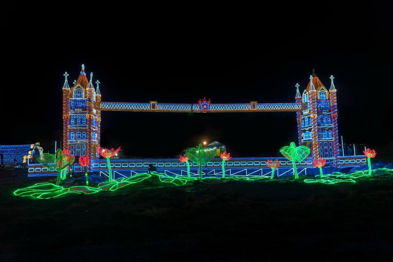 Vườn Ánh Sáng bao gồm 22 tác phẩm ánh sáng khổng lồ, cao đến 10 m và được đầu tư bằng hệ thống đèn LED công nghệ cao. |