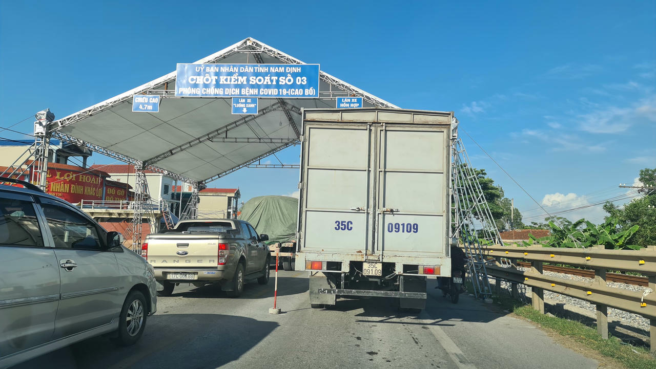 Từ 0h ngày 16/10, người vào tỉnh Nam Định không phải xuất trình kết quả xét nghiệm COVID-19 nhưng phải thực hiện khai báo y tế (Ảnh: Chốt kiểm soát số 3 hướng Ninh Bình sang Nam Định). |