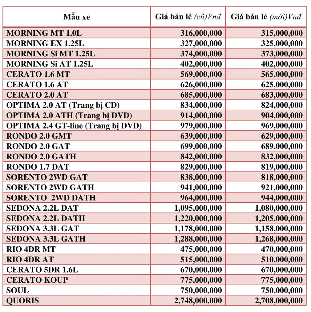Đối với xe du lịch Kia, đứng đầu trong các mẫu xe bán chạy nhất là Kia Morning với doanh số 6.132 xe và Rio đạt 1.644. Tiếp đến, Cerato đạt 2.973 xe và Sedona đạt 800 xe. Trong đó Kia Cerato và Sedona nằm trong Top những mẫu xe bán chạy nhất trong phân khúc.