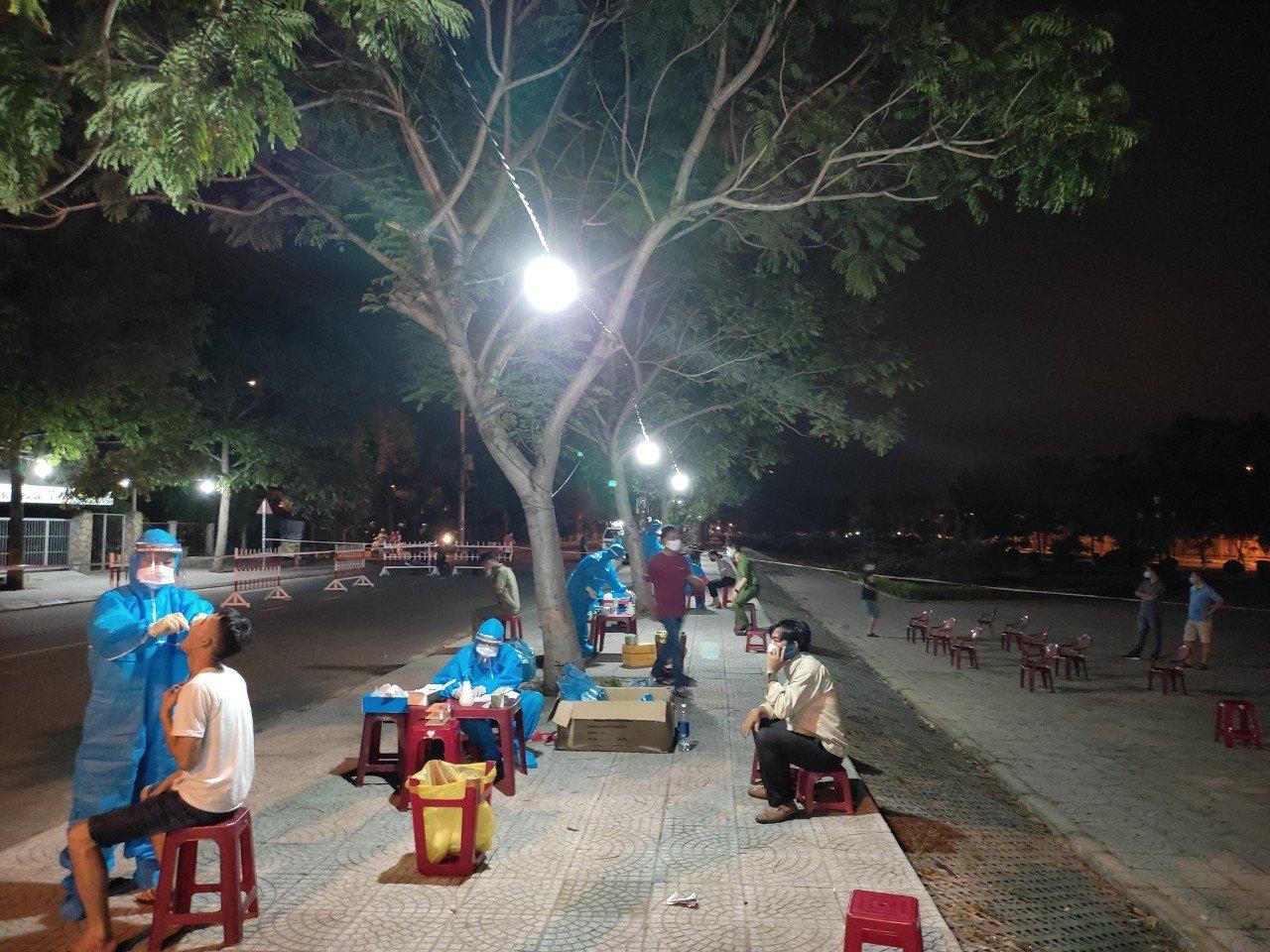 Nhân viên y tế lấy mẫu xét nghiệm cho người dân ở TP Hội An. |