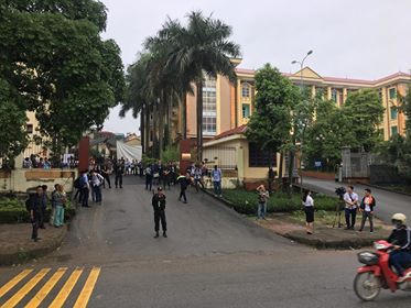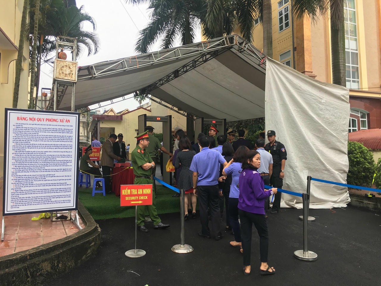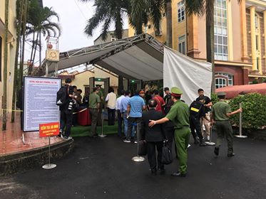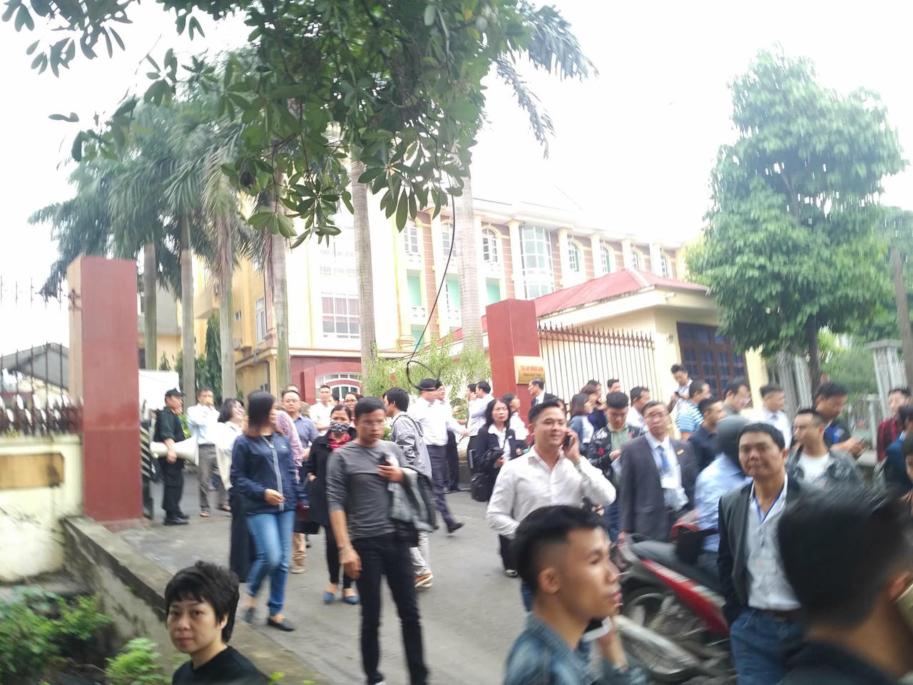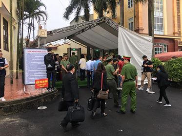 Rất nhiều người dân, thân nhân bị cáo. do không mang theo chứng minh thư để đăng kí vào tham dự phiên toà nên không được vào, chỉ được đứng ngoài cổng.