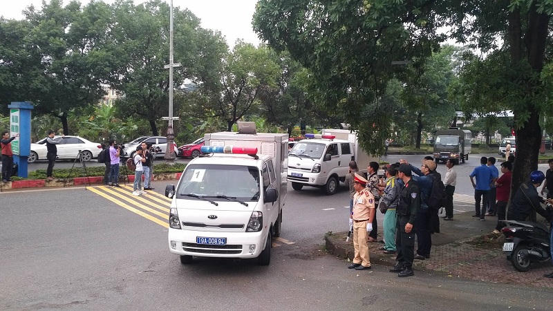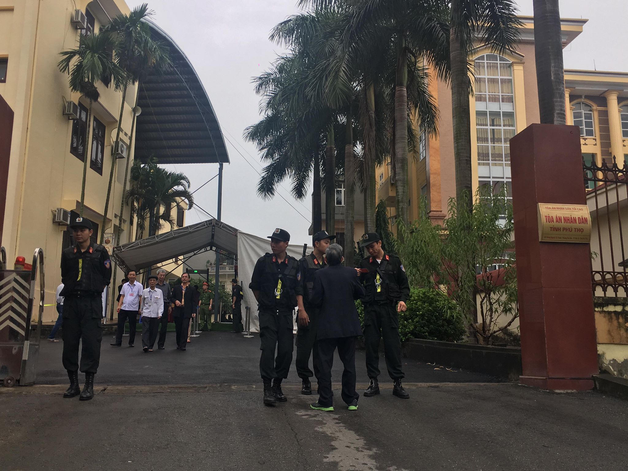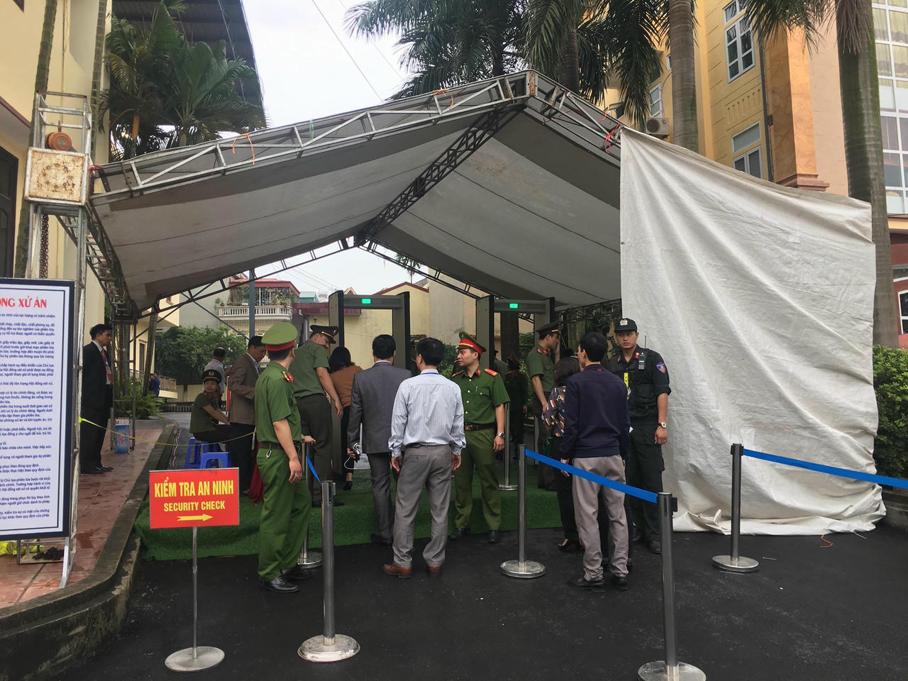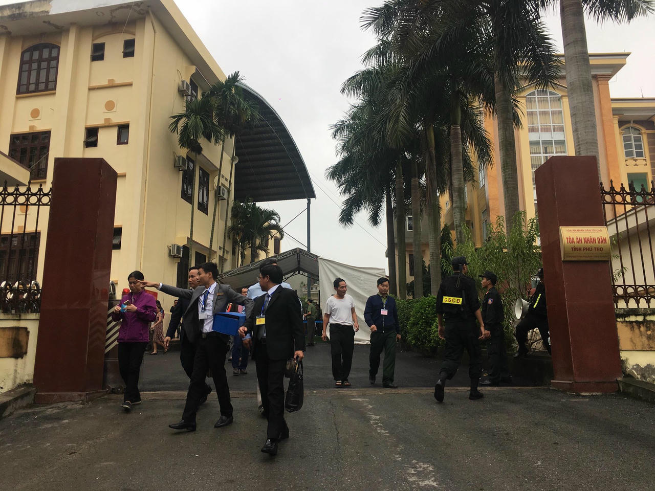 Từ 6h30, khu vực TAND tỉnh Phú Thọ an ninh được thắt chặt. Lực lượng cảnh sát được bố trí thành thành nhiều lớp để đảm bảo trật tự cho phiên tòa.