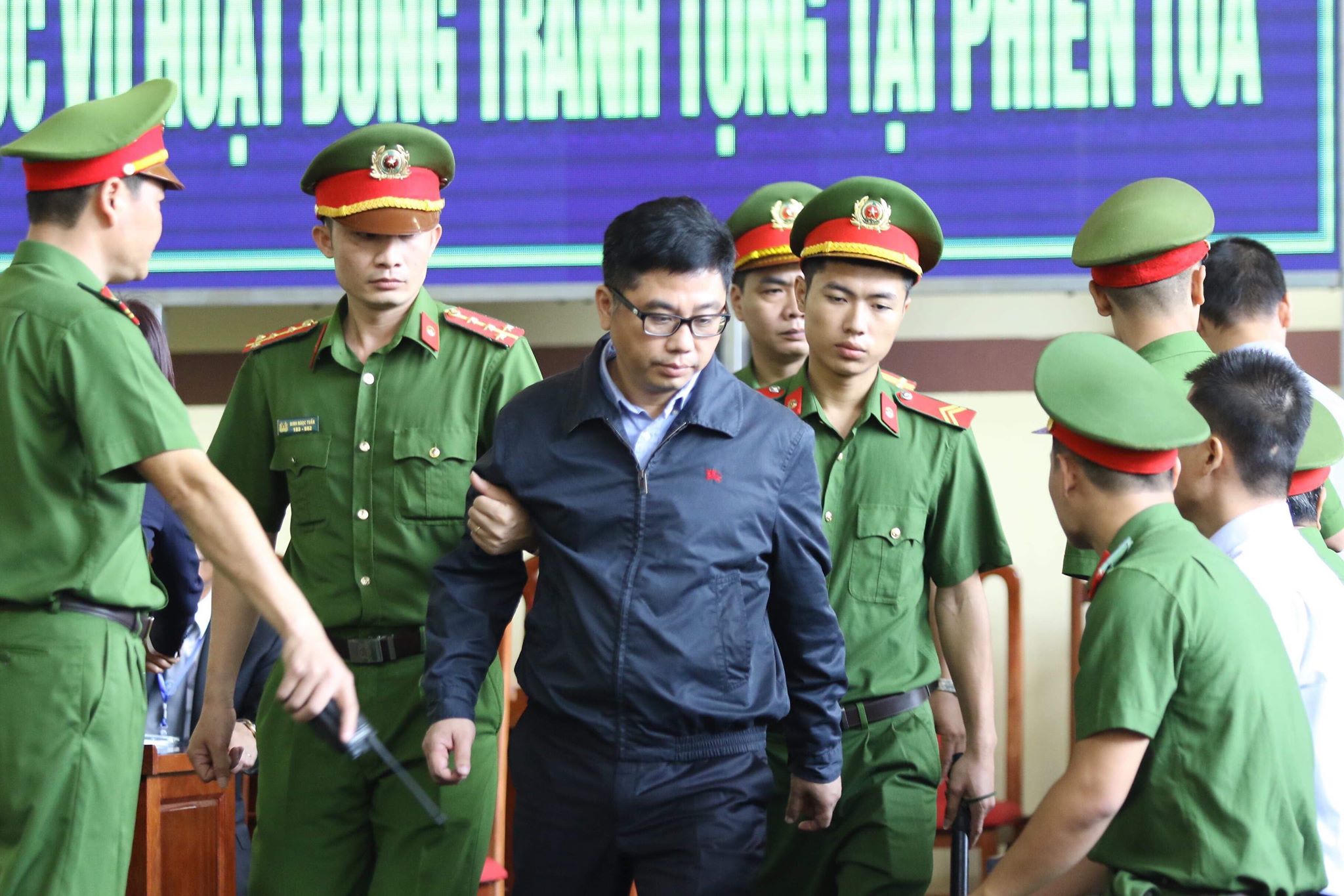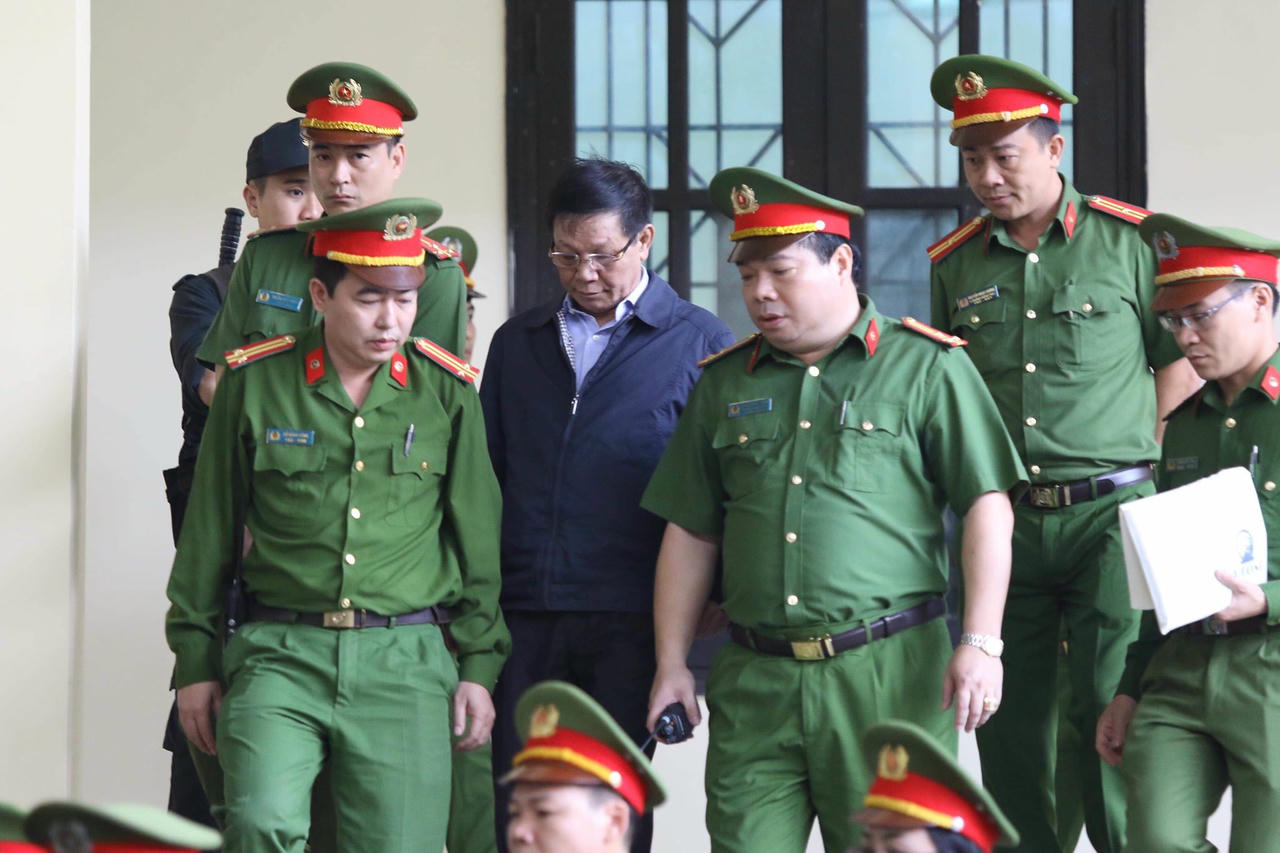 7h50, dẫn giải bị cáo Phan Văn Vĩnh vào khu vực dành cho các bị cáo tại phiên xét xử.