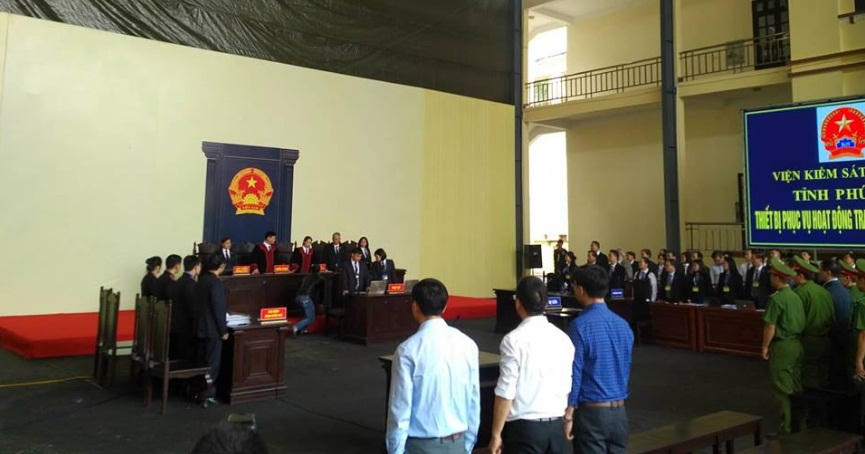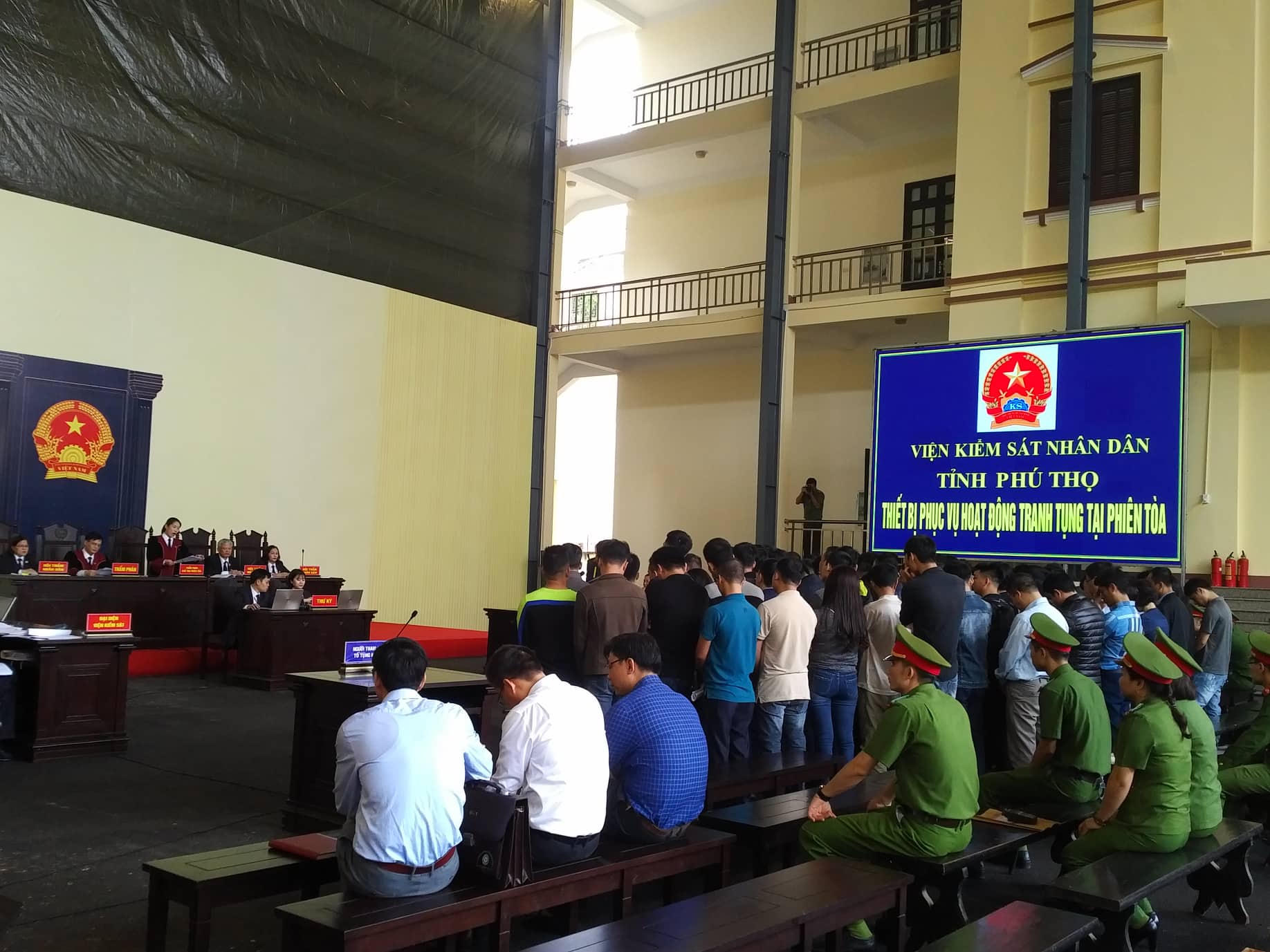 Vụ án có tới 92 bị cáo. Hội đồng xét xử gồm: Thẩm phán - Chủ tọa phiên tòa Nguyễn Thị Thùy Hương; Thẩm phán Đỗ Ngọc Tuấn. Các Hội thẩm nhân dân gồm: Bà Nguyễn Thị Phẩm, bà Bùi Thị Hảo, ông Nguyễn Bá Điển. Thư ký phiên tòa: Bà Phan Thị Huyền và ông Nguyễn Thành Long. Đại diện VKSND tỉnh Phú Thọ: ông Lê Xuân Lộc, Nguyễn Duy Hưng, Nguyễn Quang Hồng và bà Phạm Thị Bích Liên - kiểm sát viên.