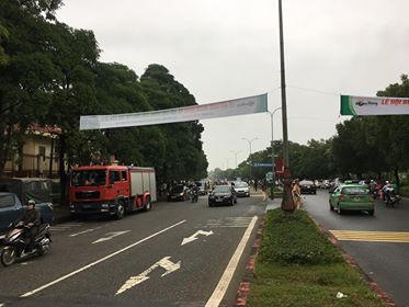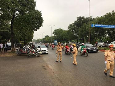 | Cảnh sát giao thông có mặt từ rất sớm để làm nhiệm vụ phân luồng, đảm bảo trật tự giao thông trên đoạn tuyến gần tòa án |
