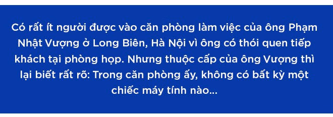 Cũng giống như các tỉ phú nổi tiếng thế giới như Carlos Slim, Warren Buffett, Donald Trump…, chưa bao giờ ông Vượng làm việc bằng máy tính. Chủ tịch Vingroup có một thói quen lạ: Tất cả tài liệu cấp dưới trình ông đọc, đều phải được in thành văn bản. Muốn chỉnh sửa, phê duyệt gì, ông sẽ trực tiếp dùng bút trên giấy. Chỉ đạo của ông cũng được viết ra giấy rồi thư ký sẽ gõ và chuyển email đi các nơi.