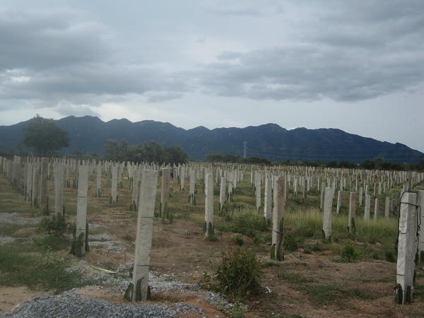 Anh Hùng cho biết, điều khó nhất chính là lúc đầu mới đưa vào trồng và đổ trụ. Sau khi đã gieo nhánh thanh long giống được một thời gian thì công việc chăm sóc cũng không quá mất nhiều thời gian.