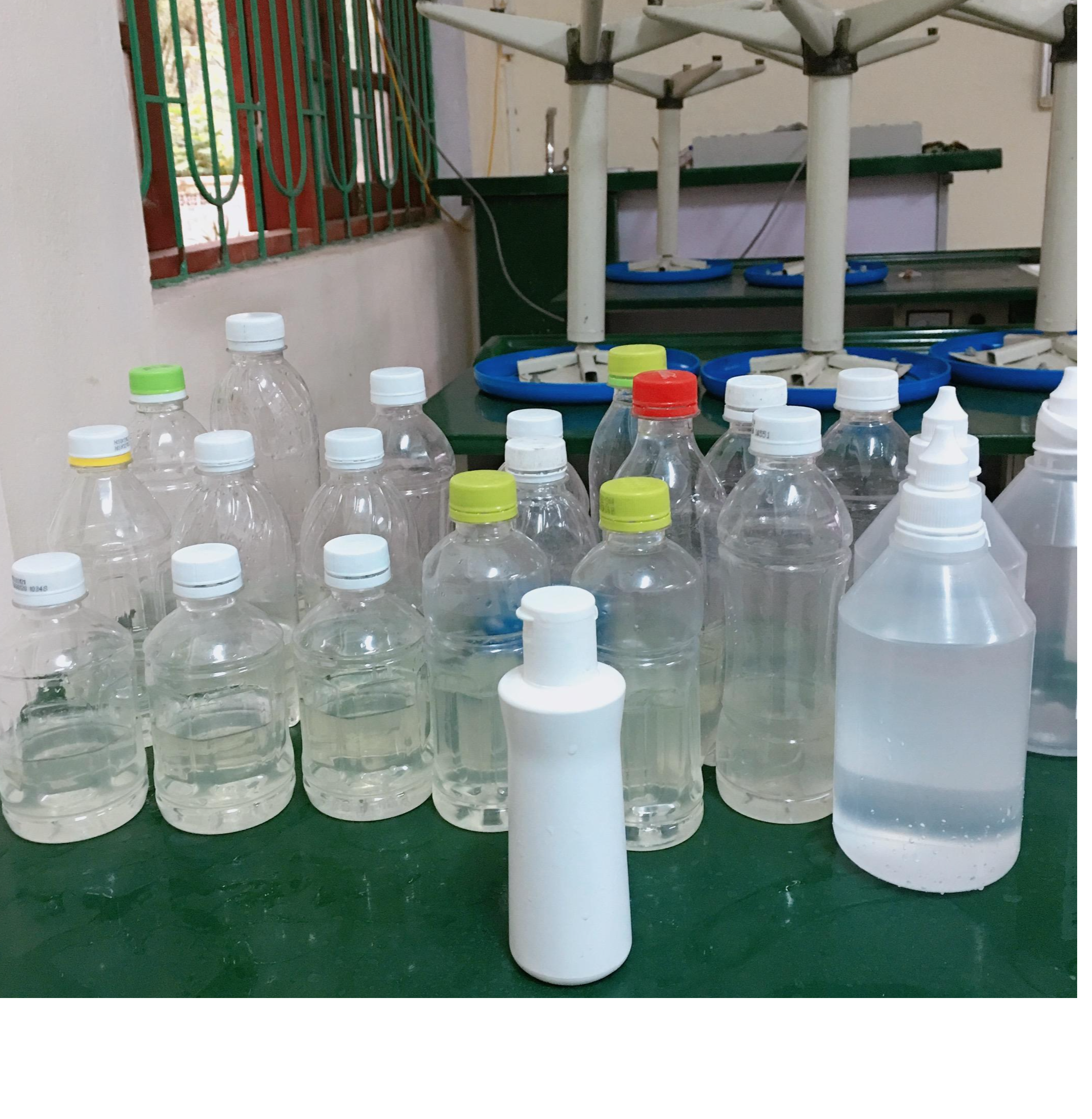 | Dung dịch nước rửa tay của cô Liễu và các bạn học sinh trường PTDTBT THCS Lương Thông tự điều chế tặng nhà trường và người dân để phòng chống Covid 19 |