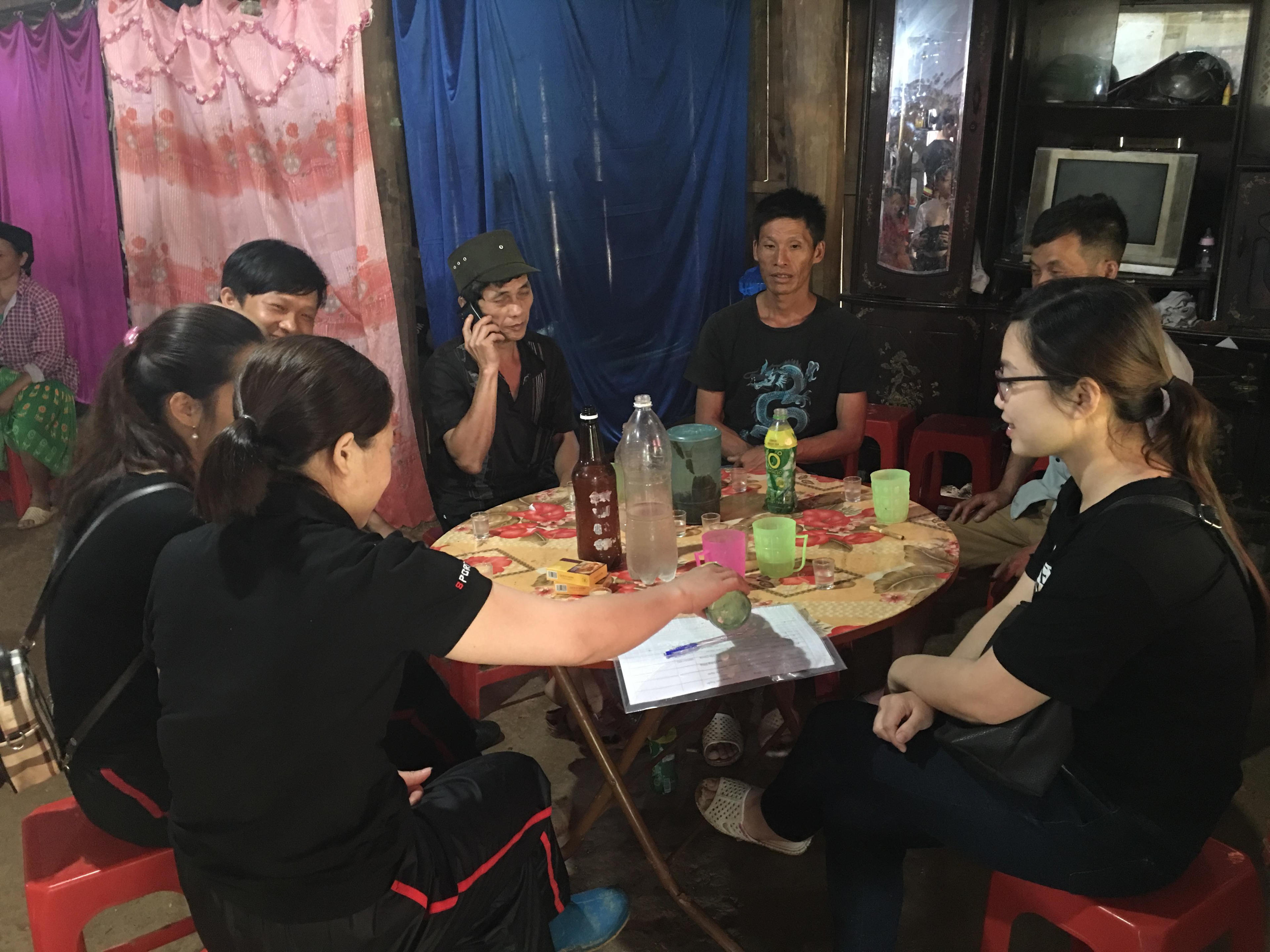 Cô Liễu cùng các thầy cô giáo trường PTDTBT THCS Lương Thông tới vận động gia đình các em học sinh. |