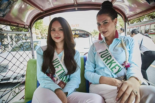 Ngày 24.2, Hương Giang chính thức sang Thái Lan tham dự cuộc thi Hoa hậu chuyển giới Quốc tế 2018 trong sự cổ vũ của người hâm mộ và nhiều đồng nghiệp. Vừa đến nơi, cô đã cho thấy sự hòa đồng của mình khi kết thân rất nhanh với các thí sinh khác.