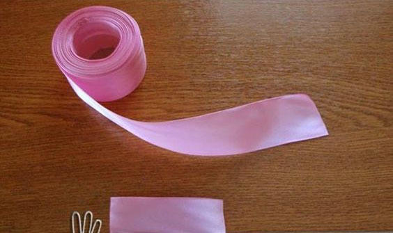 | Chọn Ribon màu và kích thước ưa thích, cắt từng đoạn ngắn có kích thước chiều dài gấp 2,5 lần chiều rộng. |