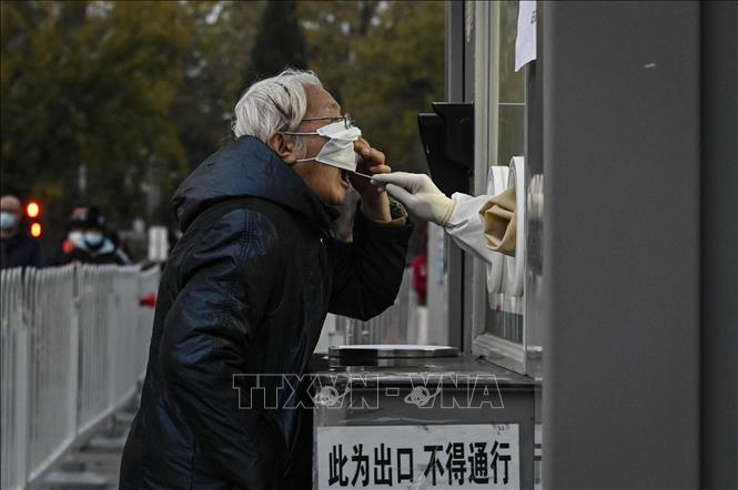 Nhân viên y tế lấy mẫu xét nghiệm COVID-19 cho người dân tại Bắc Kinh, Trung Quốc, ngày 22/11/2022. Ảnh: AFP/TTXVN