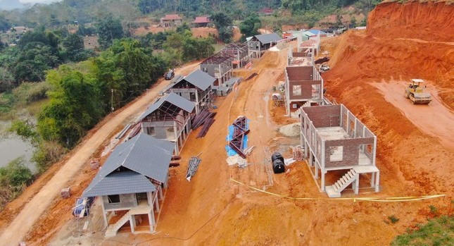 Khu tái định cư Át Thượng đang được Quân khu 2 tích cực xây dựng, dự kiến hoàn thiện và bàn giao trước Tết nguyên đán. Ảnh: Nguyên Đức. |