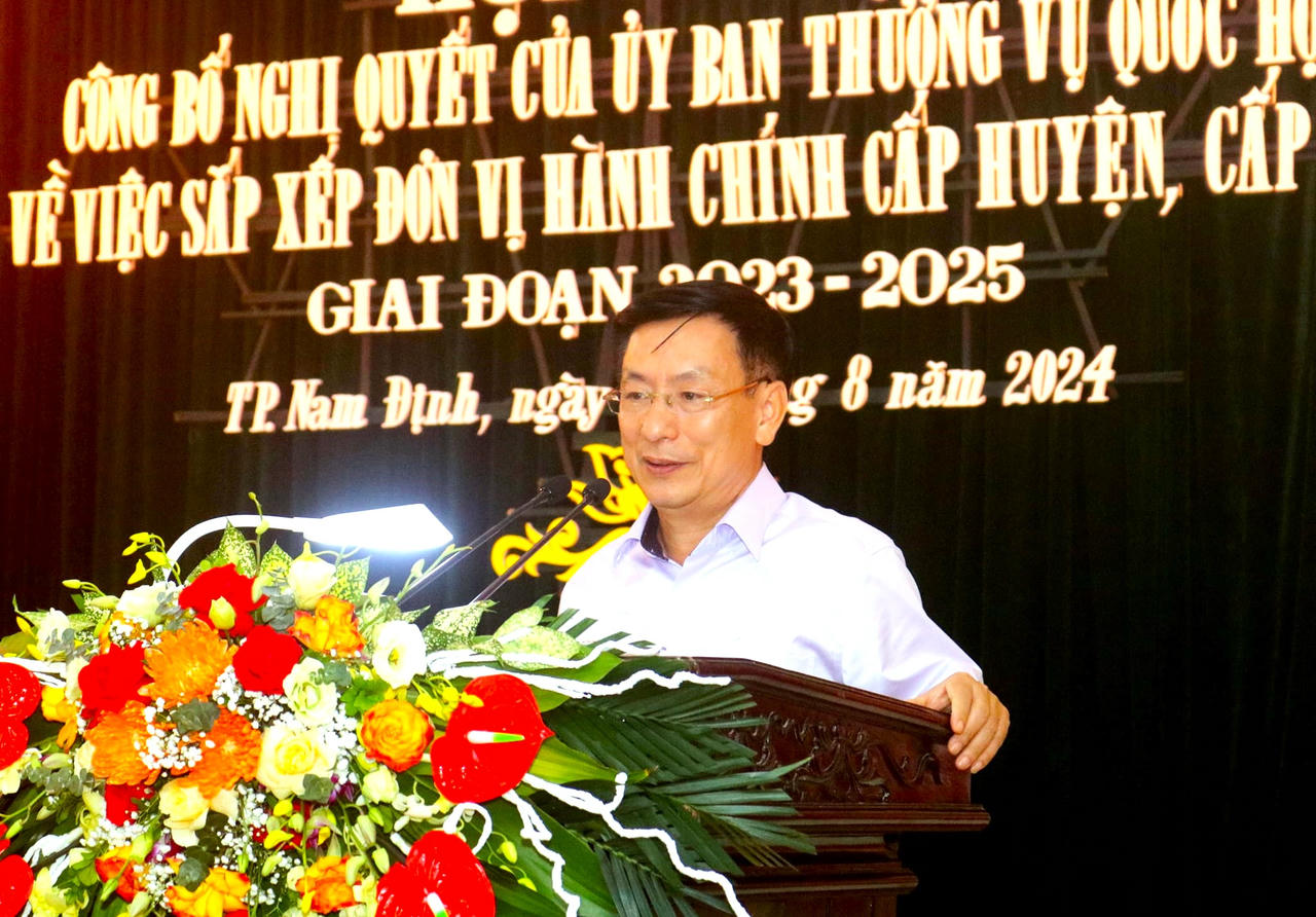 Chủ tịch UBND tỉnh Nam Định nhấn mạnh, sau khi sáp nhập, thành phố Nam Định sẽ hạ cấp đô thị từ loại I xuống loại II nên cấp uỷ, chính quyền, các ban, ngành, đoàn thể, địa phương phải tập trung tuyên truyền, giải thích để cán bộ, đảng viên, nhân dân hiểu rõ nội dung này.