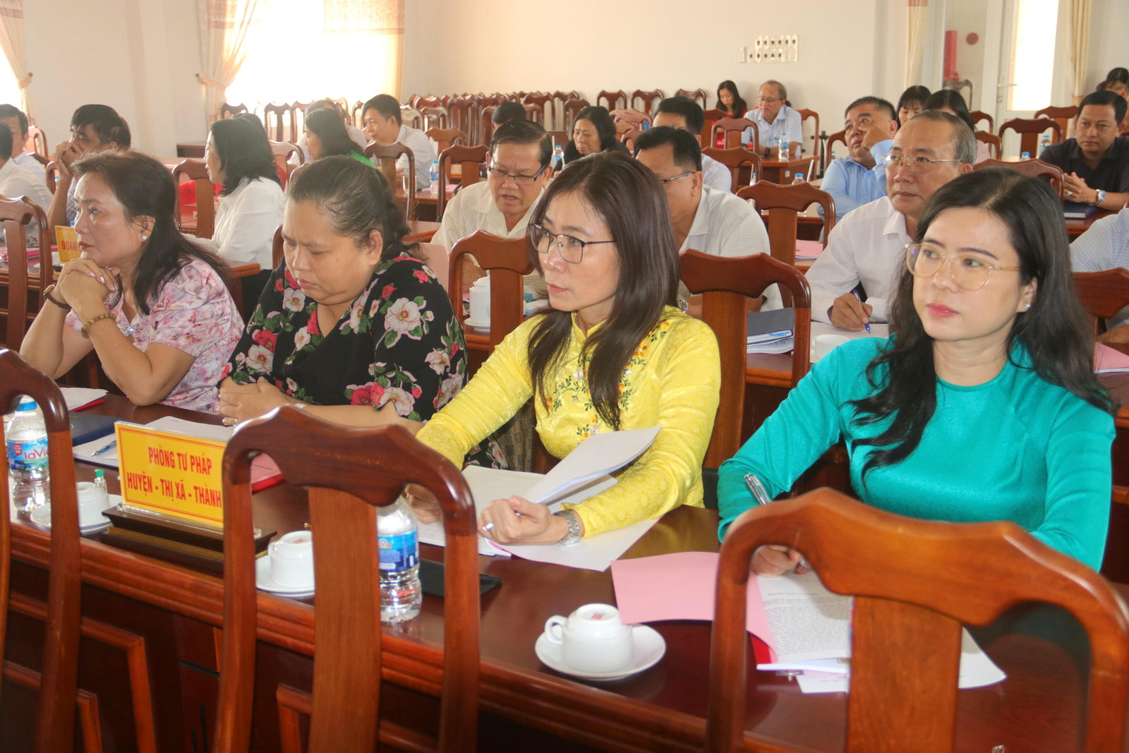 Tại hội nghị, lãnh đạo các Phòng Tư pháp đã trình bày tham luận, trao đổi những vấn đề thành tựu, thách thức, khó khăn công tác tư pháp địa phương gặp phải trong thời gian qua. Đáng chú ý, ở từng địa phương lại có những “điểm sáng” ở từng lĩnh vực công tác khác nhau. Cụ thể như: Đổi mới hoạt động hưởng ứng Ngày Pháp luật của huyện Châu Phú; Hiệu quả việc đăng ký hộ tịch trực tuyến trên địa bàn thị xã Tịnh Biên; Hiệu quả việc thực hiện chứng thực điện tử trên địa bàn huyện Phú Tân… Những mô hình hay, cách làm đổi mới của các địa phương đã góp phần tích cực nâng cao hiệu quả công tác tư pháp trên địa bàn tỉnh An Giang.