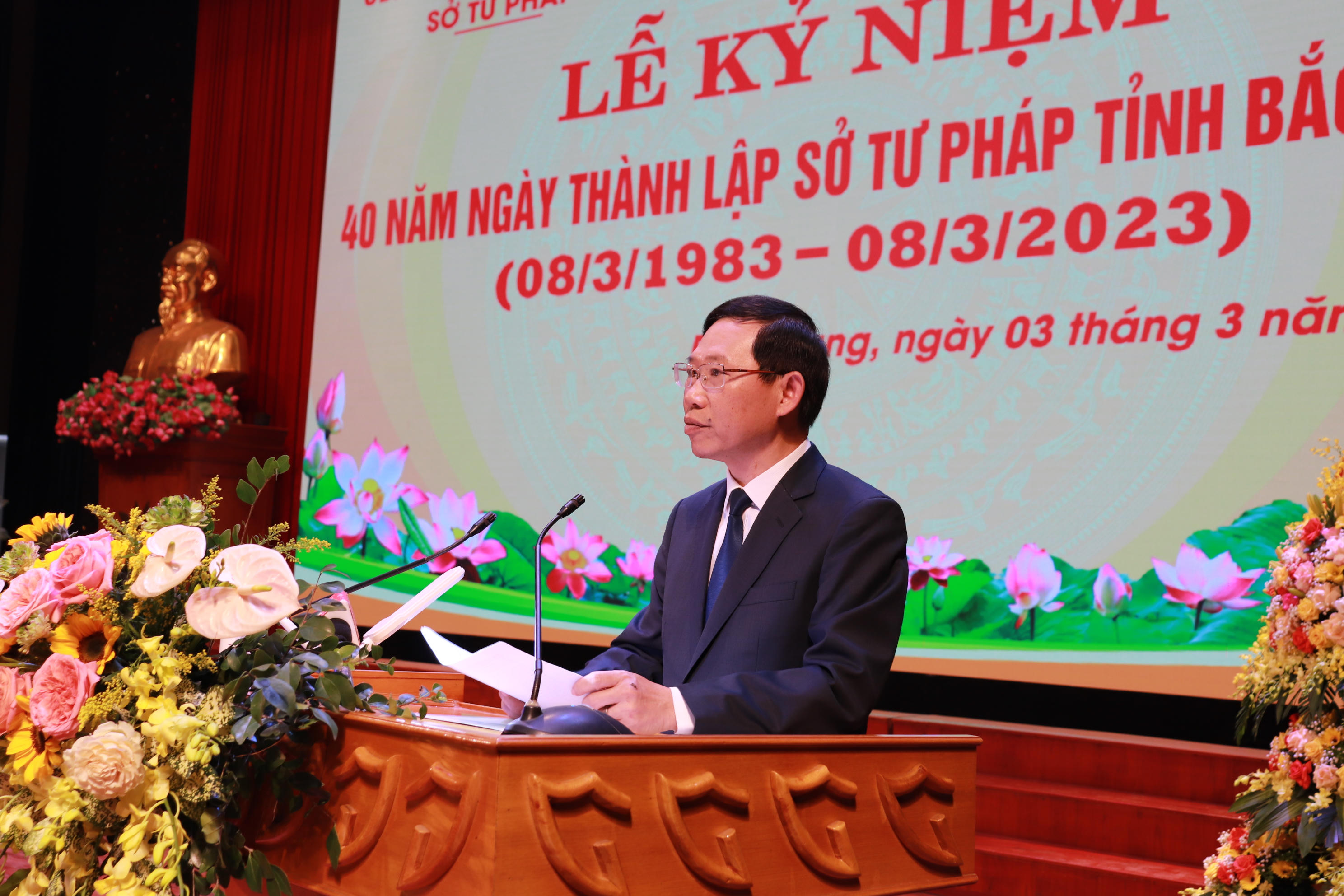Tại buổi lễ, Giám đốc Sở Tư pháp Bắc Giang Đỗ Thị Việt Hà khẳng định: 40 năm qua, dưới sự quan tâm lãnh đạo, chỉ đạo thường xuyên, toàn diện của Tỉnh ủy, HĐND, UBND tỉnh; sự chỉ đạo, hướng dẫn về chuyên môn nghiệp vụ của Bộ Tư Pháp; sự phối hợp cộng tác, giúp đỡ của các cơ quan, ban, ngành, đoàn thể ở tỉnh; cấp ủy, chính quyền các địa phương trong tỉnh; cùng với sự cố gắng, nỗ lực bền bỉ của các thế hệ lãnh đạo Sở và các cán bộ, công chức, viên chức ngành Tư pháp qua các thời kỳ và hiện nay, Sở Tư pháp Bắc Giang đã và đang ngày càng khẳng định được vị thế, vai trò của ngành đối với sự phát triển của tỉnh nhà và của ngành Tư pháp Việt Nam.