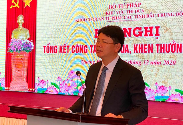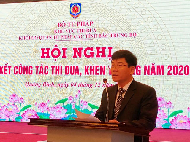 (PLVN) -Đó là đánh giá của Thứ trưởng Bộ Tư pháp Nguyễn Thanh Tịnh tại hội nghị Tổng kết công tác thi đua, khen thưởng năm 2020 Khu vực thi khối cơ quan Tư pháp các tỉnh Bắc Trung Bộ, diễn ra ngày 4/12 tại TP Đồng Hới, tỉnh Quảng Bình.