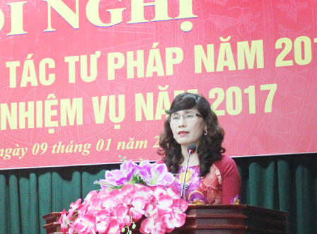 Theo báo cáo của bà Nguyễn Thị Quế Anh, Phó Giám đốc Sở Tư pháp Nghệ An, năm 2016 ngành Tư pháp Nghệ An đã bám sát các yêu cầu định hướng của ngành và địa phương, tham mưu cho lãnh đạo tỉnh kịp thời các chỉ đạo, điều hành và định hướng công tác Bộ Tư pháp, Tỉnh ủy, HĐND, UBND.