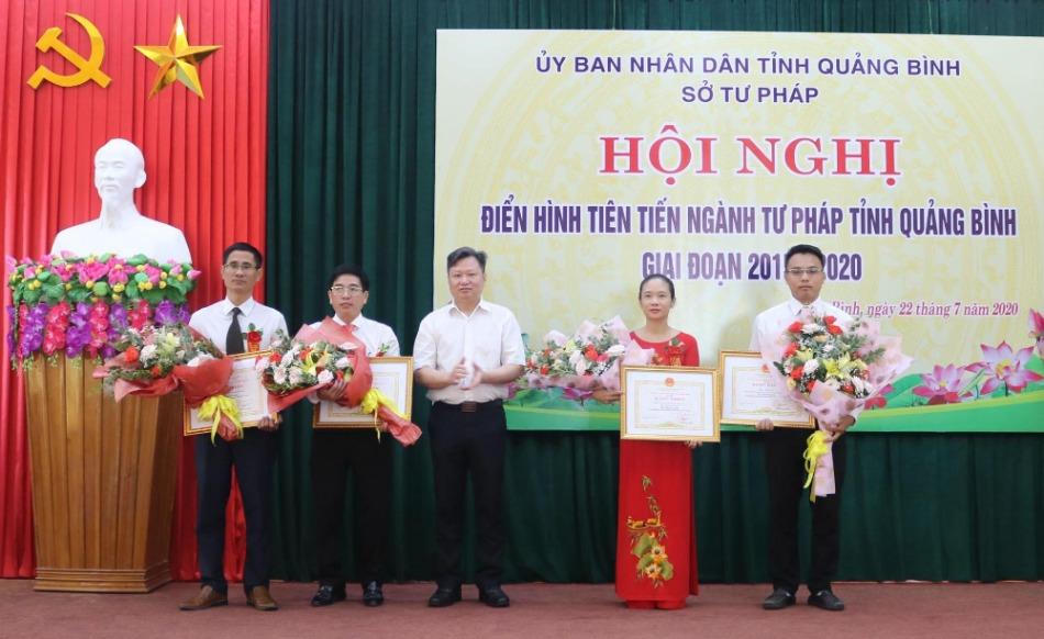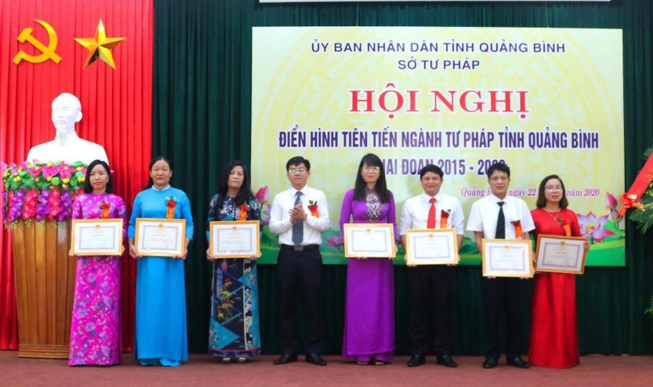 Dịp này, Chủ tịch UBND tỉnh Quảng Bình đã tặng bằng khen cho 3 tập thể, 1 cá nhân ngành Tư pháp vì đã có nhiều thành tích xuất sắc trong giai đoạn 2015 - 2020; 5 tập thể, 6 cá nhân được Sở Tư pháp công nhận là điển hình tiên tiến cấp cơ sở giai đoạn 2015 - 2020...