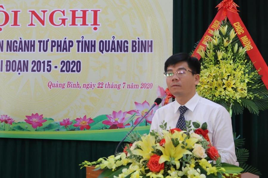 Phát biểu tại hội nghị, Phó Chủ tịch UBND tỉnh Nguyễn Tiến Hoàng đã ghi nhận cao những thành tích của ngành Tư pháp tỉnh Quảng Bình trong giai đoạn 2015 – 2020 và đề nghị trong thời gian tới, ngành Tư pháp tỉnh này cần tập trung lãnh đạo, chỉ đạo triển khai phát triển sâu rộng và thực hiện có hiệu quả các phong trào thi đua yêu nước gắn với nhiệm vụ trọng tâm của ngành; đẩy mạnh công tác tuyên truyền, kịp thời phát hiện để biểu dương khen thưởng và nhân rộng các điển hình tiên tiến nhằm tạo sức lan tỏa và làm theo; tiếp tục củng cố, kiện toàn hội đồng thi đua, khen thưởng và bộ máy cán bộ làm công tác này theo hướng tinh gọn, hiệu quả...