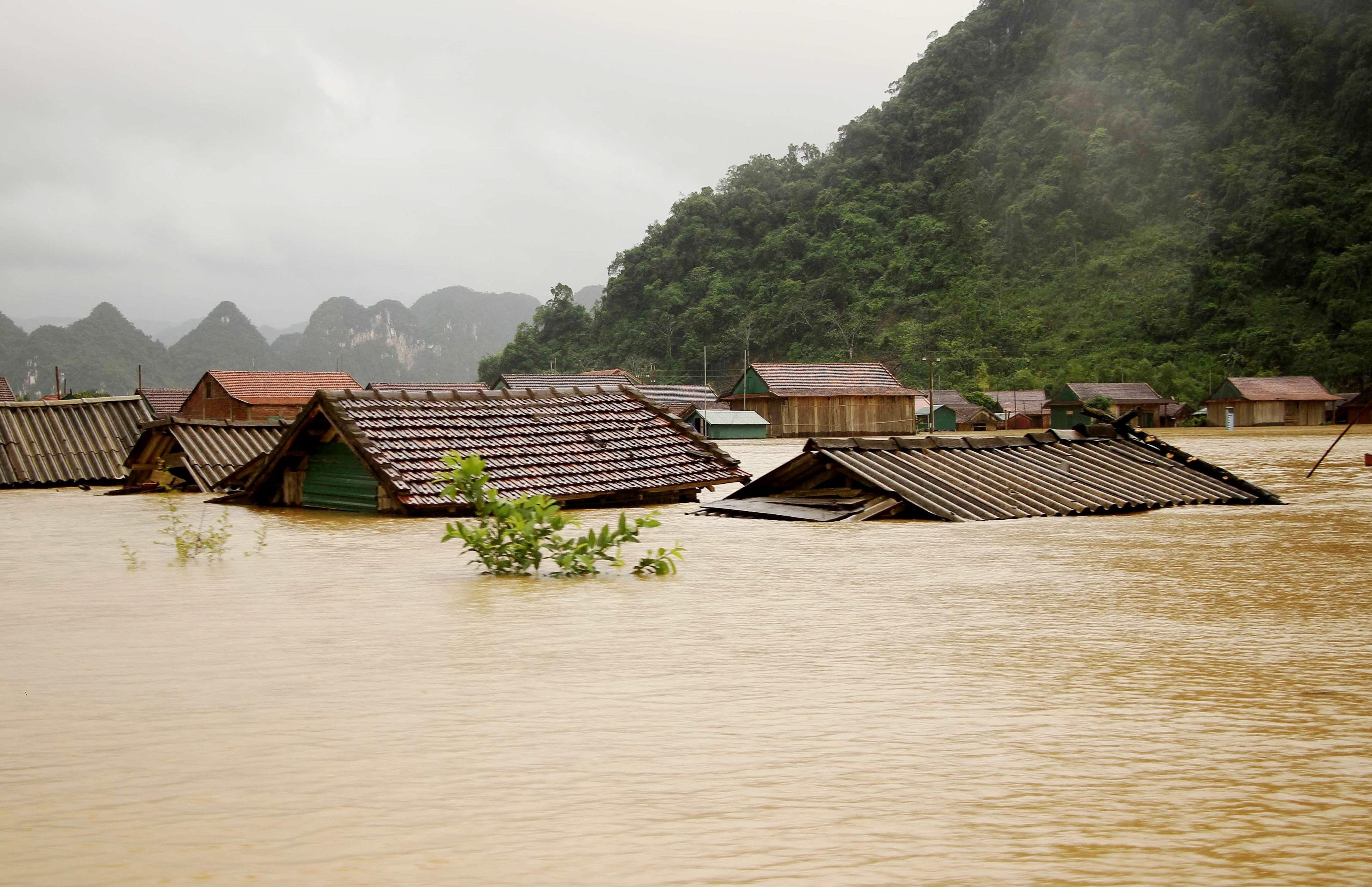Nhà cửa tại Tân Hóa bị nhấn chìm vào mùa mưa lũ hàng năm. Ảnh: Nguyên Nguyên |