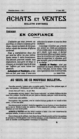 Năm 1927, bán nguyệt san Mua và Bán (Achats et Ventes) chuyên về quảng cáo phát hành tại Sài Gòn. Tòa soạn báo đặt tại số 115, boulevard de la Somme (nay là đường Hàm Nghi, TP Hồ Chí Minh). Giám đốc Tòa soạn là J.G. Hérisson. Tôn chỉ của báo được đăng trên số đầu tiên ra ngày 01 tháng 6 cùng năm: “Sáng kiến mà chúng tôi đưa ra hôm nay, bằng cách phát hành một tờ báo mới, đáp ứng nhu cầu thông tin nhanh chóng của các doanh nhân hiện đại. Hai lần mỗi tháng, chúng tôi tập trung trên báo những lời chào hàng hấp dẫn nhất được gửi đến cho Tòa soạn.