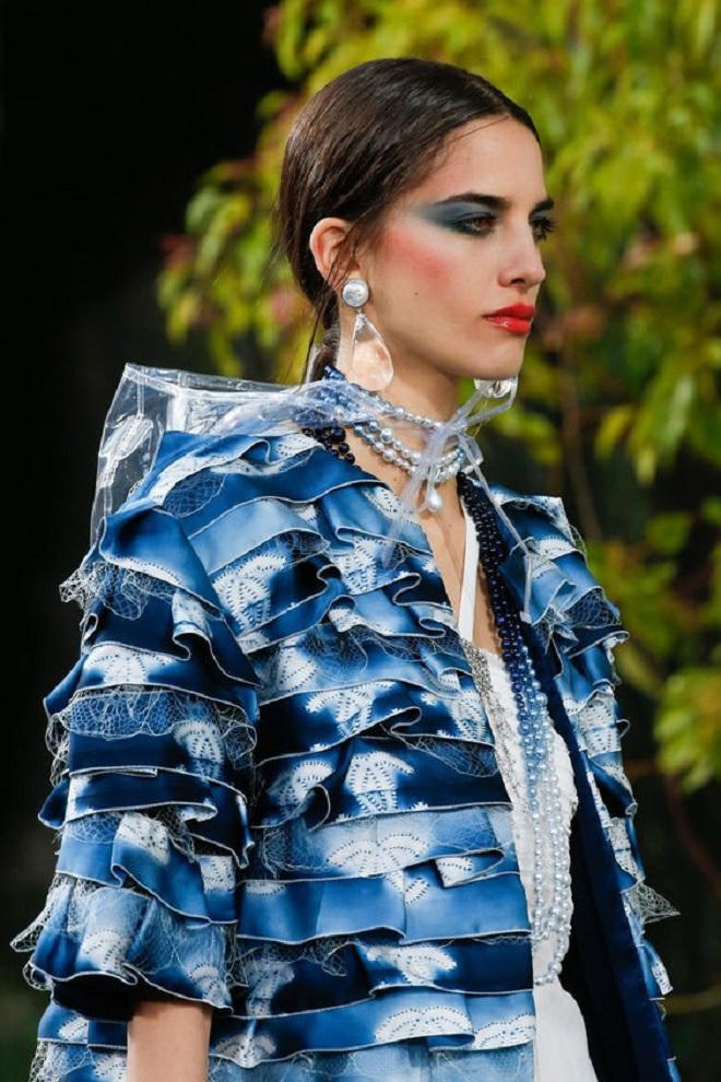 Tiếp theo là sự xuất hiện của phụ kiện chất nylon trong suốt. Đi đầu cho trào lưu này chính là nhà Chanel với bộ sưu tập Xuân Hè 2018 ngập tràn giày, túi xách, đến cả bao tay và nón bằng nylon. Ý nghĩa của bộ sưu tập là hướng đến phong cách tương lai kết hợp với cổ điển, đồng thời khoe hết những trang sức đeo bên trong.