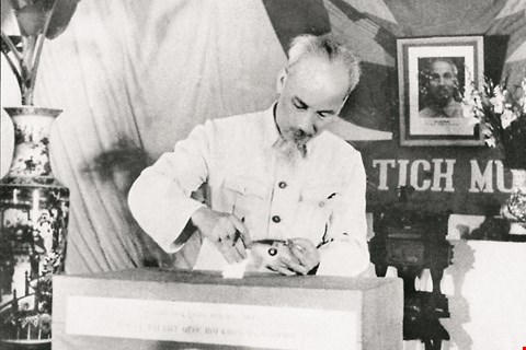 Ngày 1/1/1960, Chủ tịch Hồ Chí Minh ký sắc lệnh công bố Hiến pháp mới của nước Việt Nam Dân chủ Cộng hòa. (Ảnh tư liệu) |