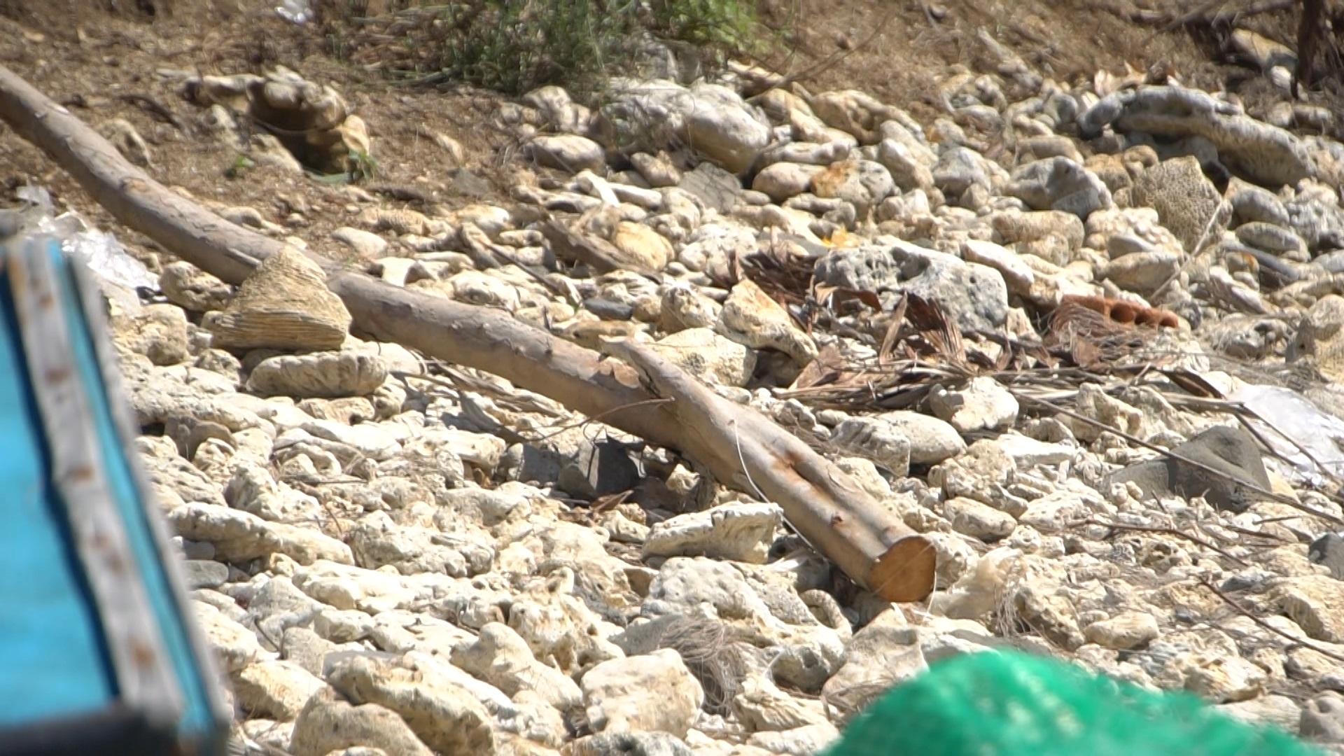 Dưới bờ chắn ấy là đất, đá và san hô được xe máy đào này múc trực tiếp từ dưới gành đá lên để làm bờ chắn sóng. Dọc bờ biển, phóng viên thấy san hô lẫn đá nằm phơi trắng khô khốc trải dài hàng chục mét trên bờ.