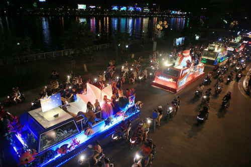 Bắt đầu từ 19h tối, dòng người nối theo đoàn xe mô hình diễu hành của lễ hội ngày càng đông. Những màn trình diễn nghệ thuật tưng bừng của các nghệ sĩ trong nước và quốc tế trên các xe mô hình được trang trí mang hình ảnh tượng trưng của 8 quốc gia: Áo, Anh, Ý, Úc, Thụy Sỹ, Trung Quốc, Nhật Bản, Việt Nam và xe mô hình của thành phố Đà Nẵng tiếp tục khuấy động không gian đường phố.