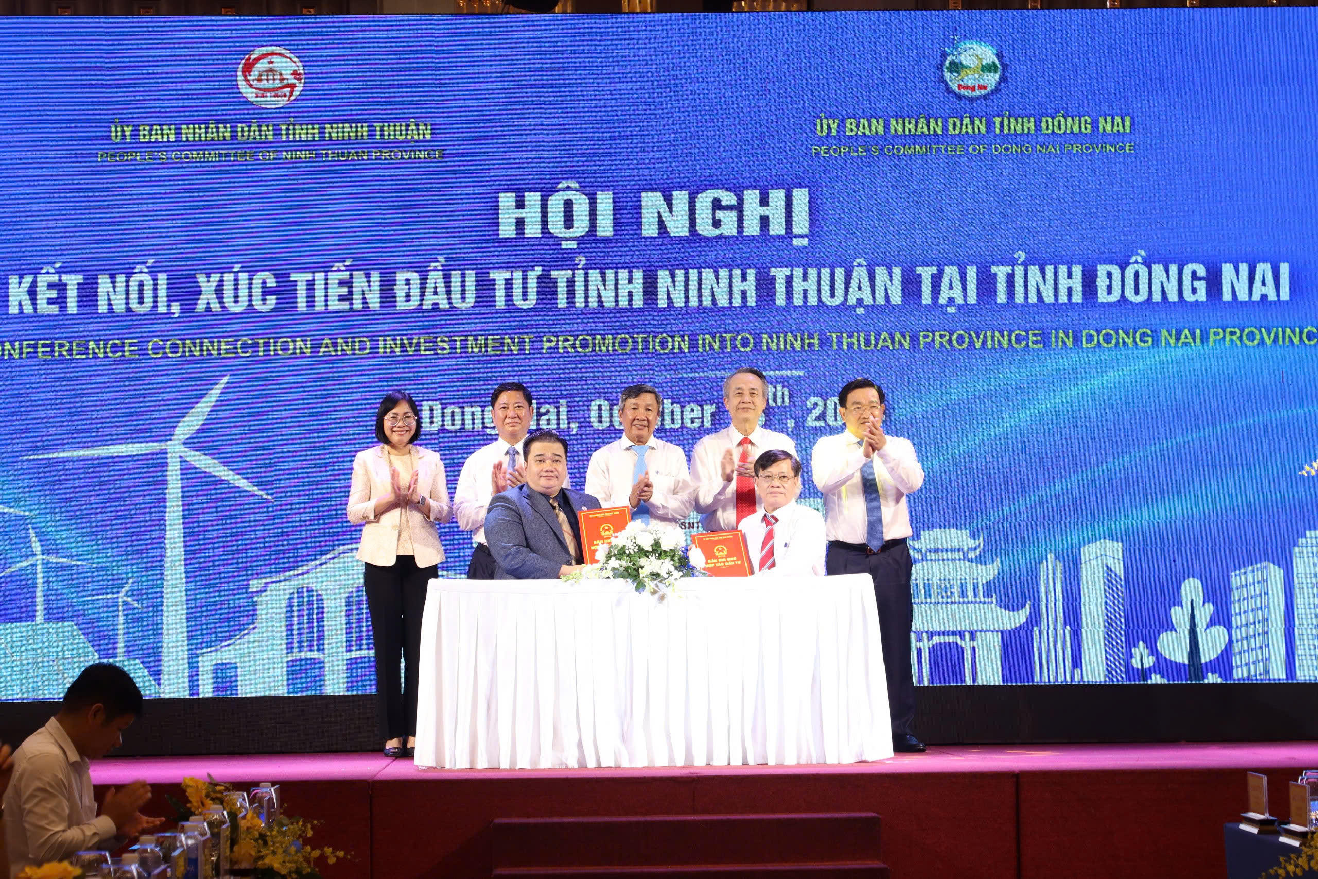 Ông Nguyễn Duy Khương đại diện doanh nghiệp tỉnh Đồng Nai ký kết hợp tác với Ban quản lý các Khu công nghiệp tỉnh Ninh Thuận trước sự chứng kiến của lãnh đạo 2 tỉnh. |