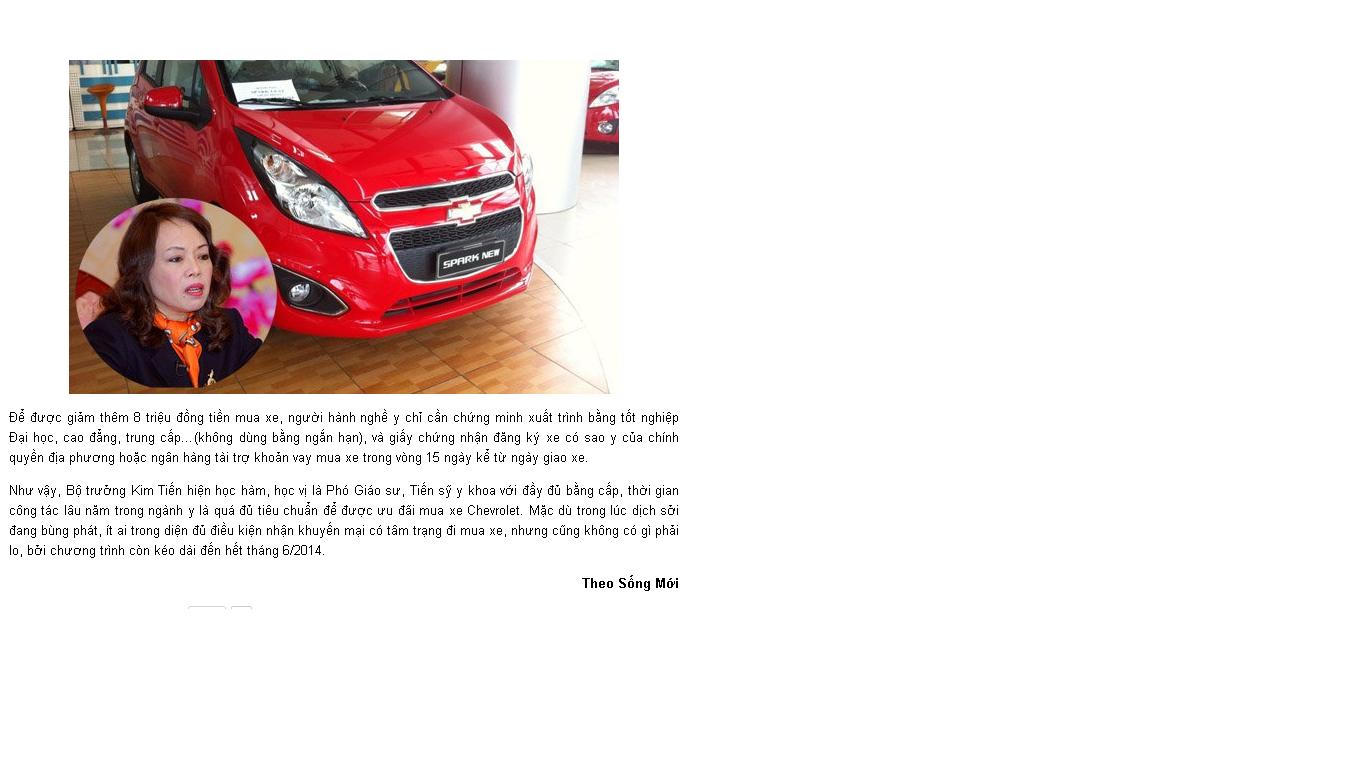 (PLO) - Một bài viết có nội dung: Nếu Bộ trưởng Bộ Y tế Nguyễn Thị Kim Tiến mua xe Chevrolet sẽ được giảm 8 triệu đồng đang gây xôn xao dư luận. Thực hư quảng cáo này như thế nào?