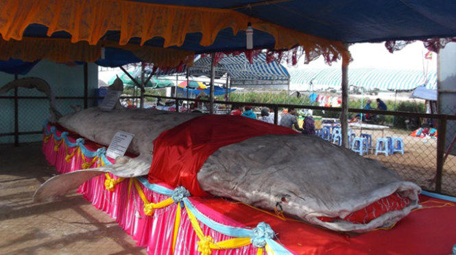 Do đó sau khi thực hiện các nghi thức truyền thống miền biển và xử lý hóa chất đối với xác cá nhám voi này, tỉnh Bạc Liêu đã mời Viện Hải dương học Nha Trang nhồi bông bộ da cá dài 9,7m, rộng trên 5m. Sau đó Sở VH-TT&DL Bạc Liêu đã có dự án xây nhà trưng bày bộ da cá nhám voi tại lăng Ông Nam Hải. Kinh phí khoảng 8 tỉ đồng.