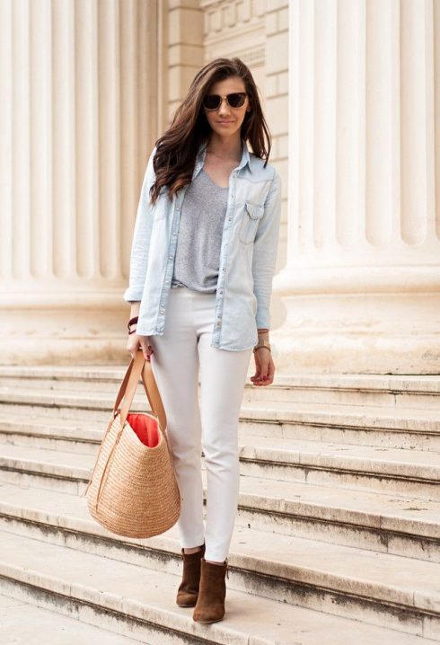 Bên cạnh phong cách nữ tính được đông đảo cô gái mến mộ, phái đẹp cá tính vẫn có thể diện chiếc túi độc đáo này với phong cách tối giản của bạn. Công thức áo sơ mi + quần jeans sẽ là sự lựa chọn thích hợp cho bất kỳ cô gái nào mới bắt đầu làm quen với item này.